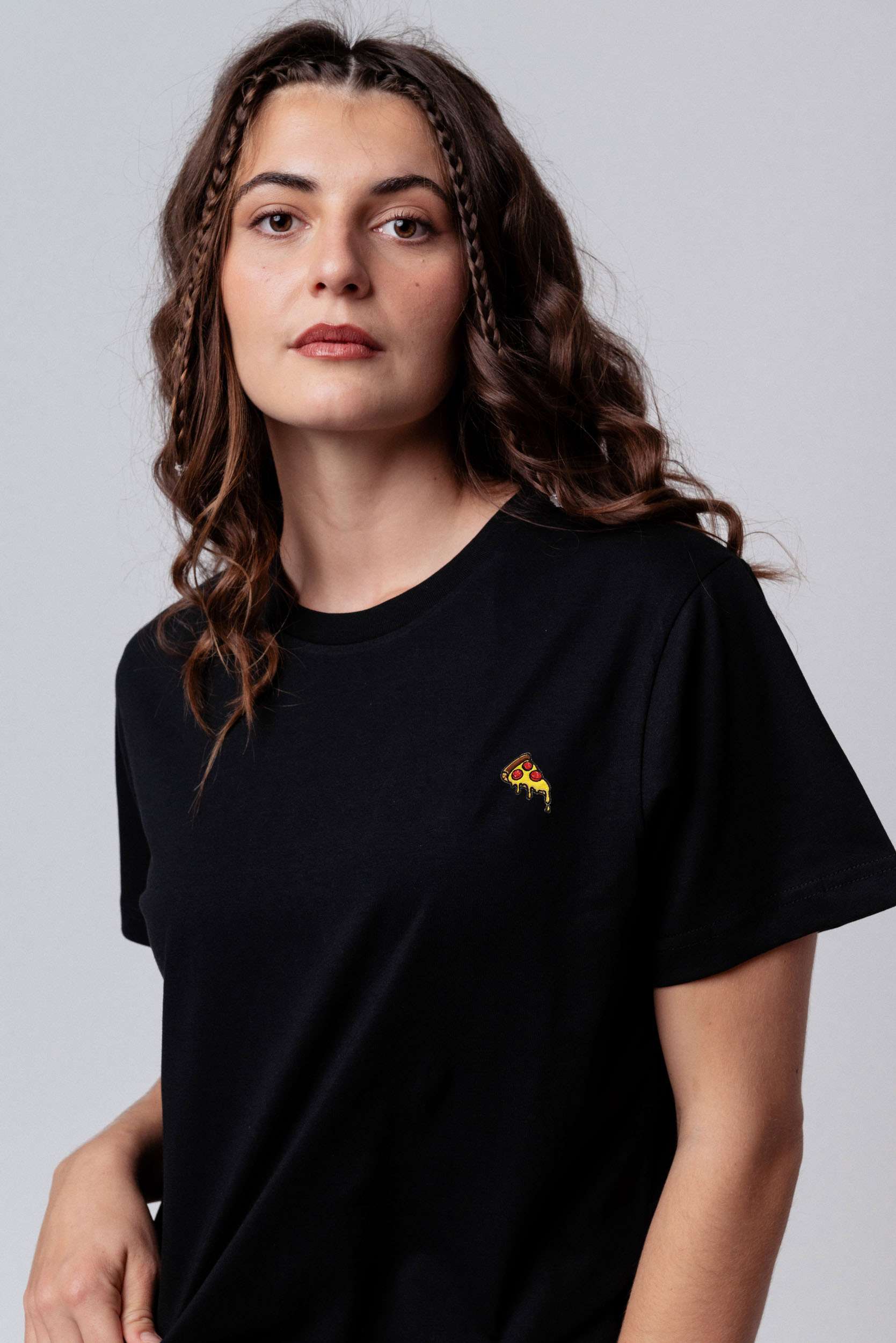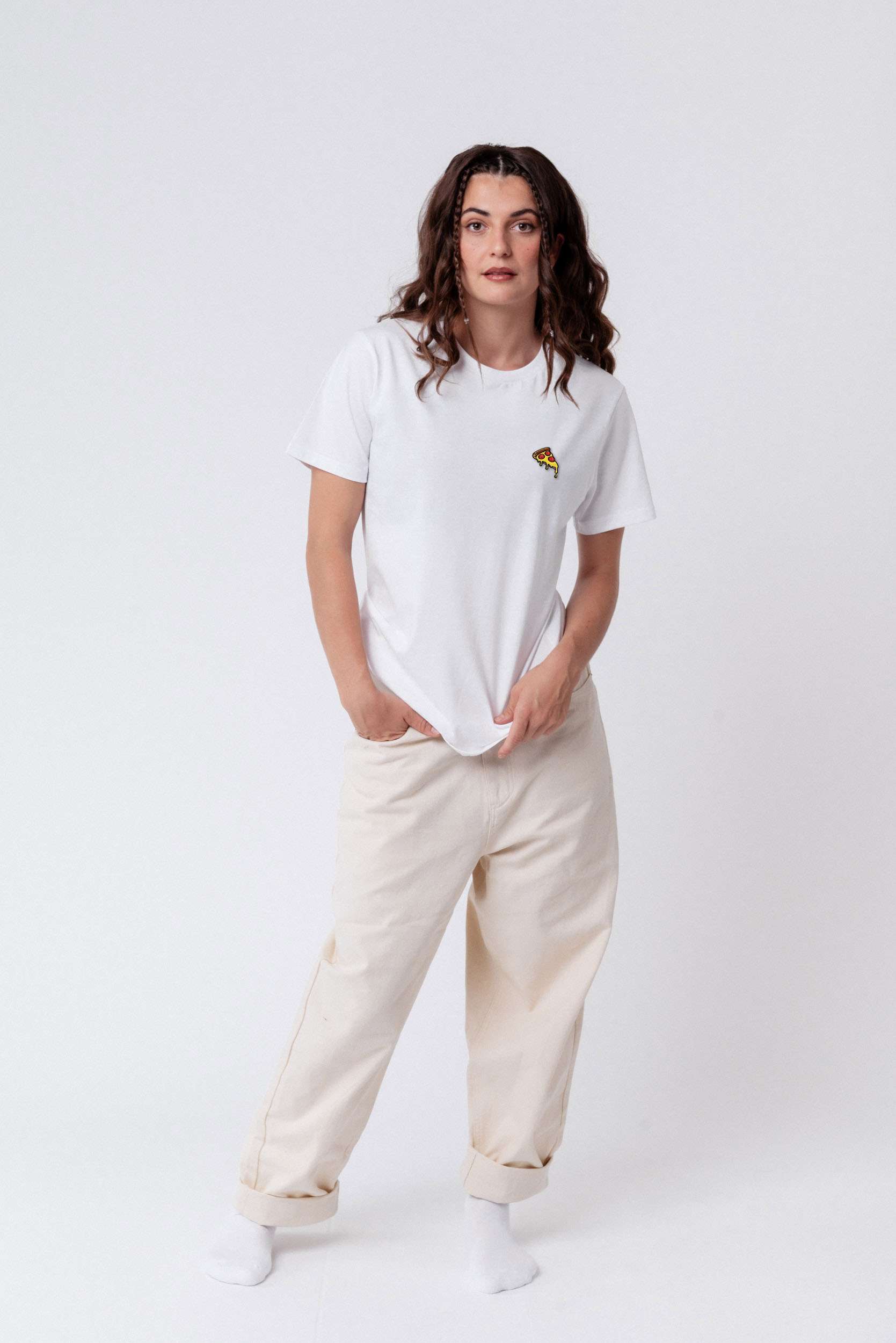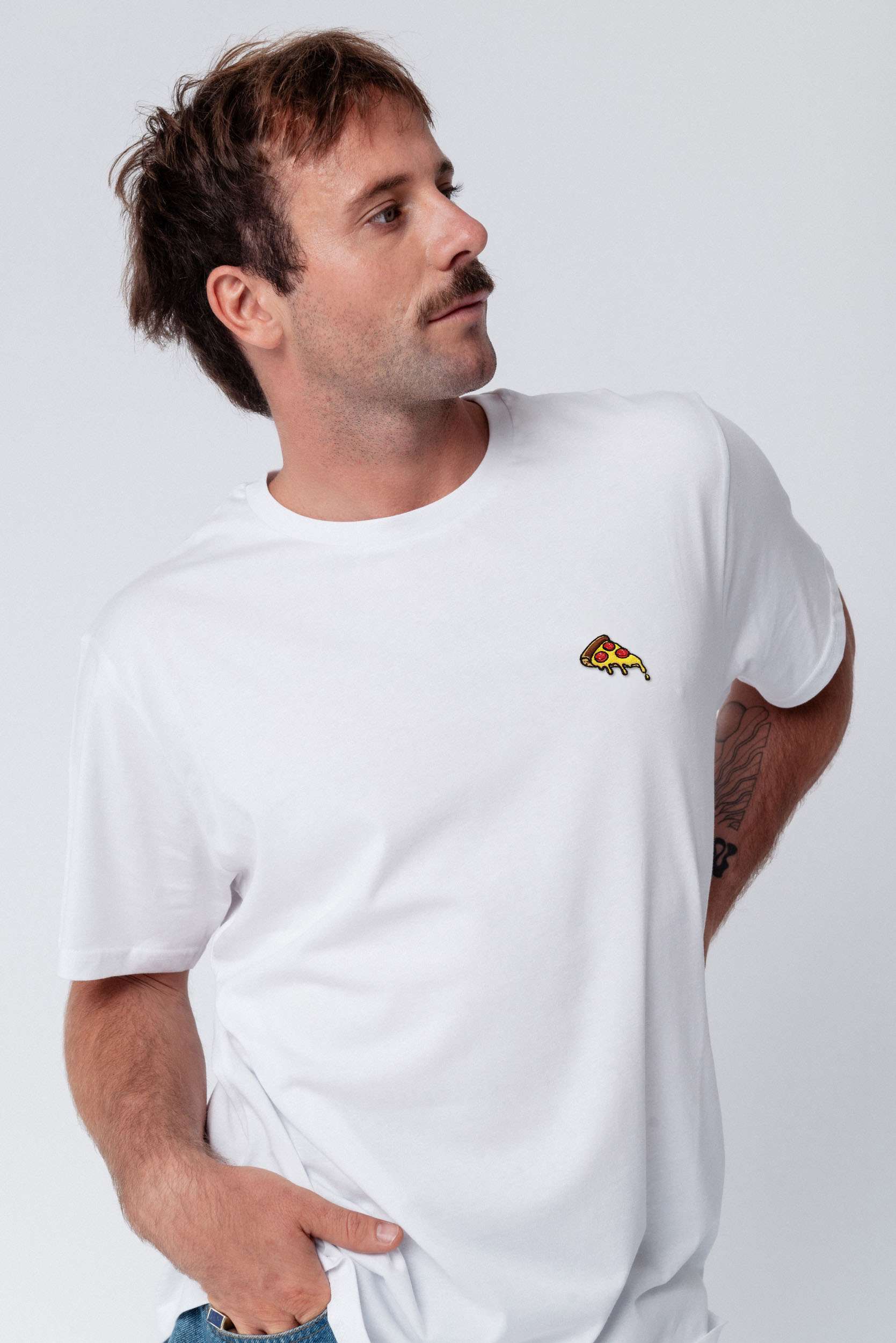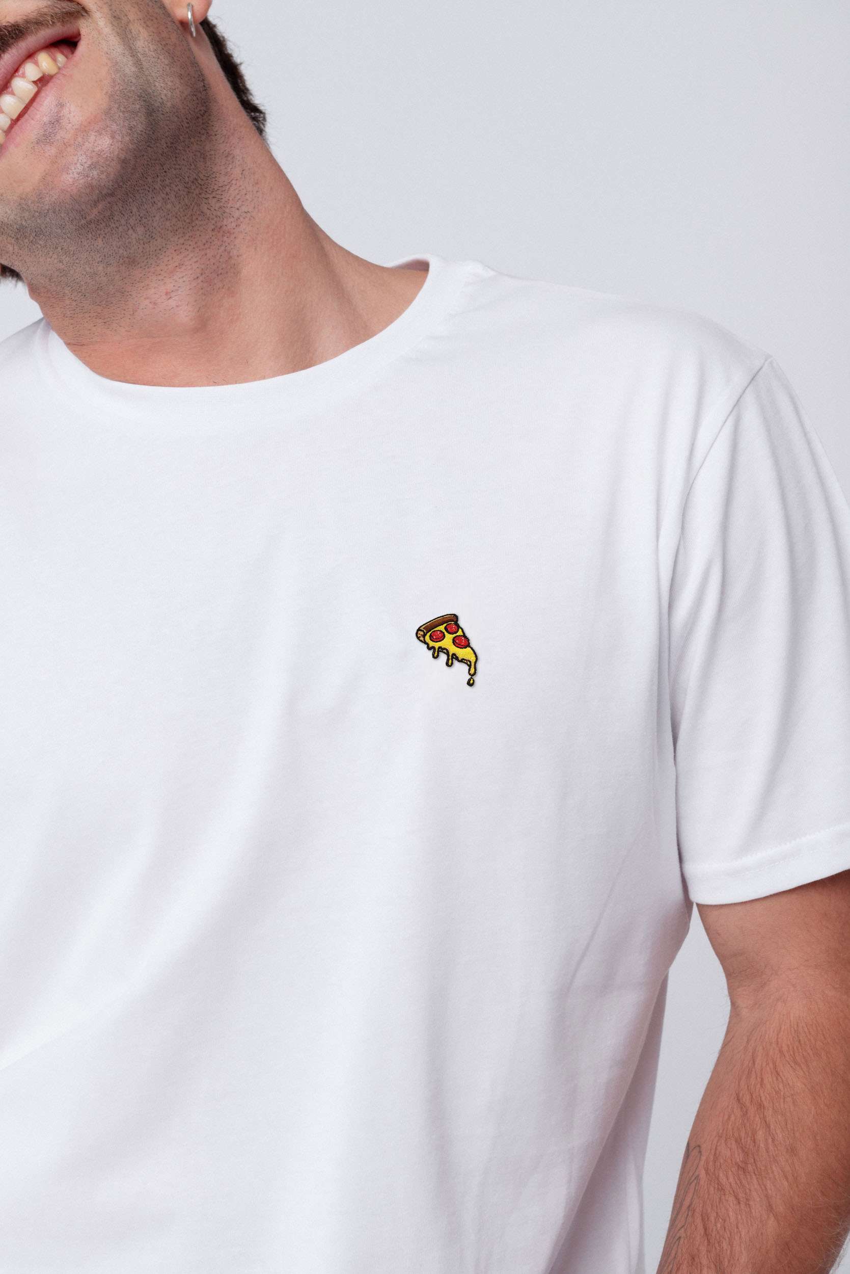 Besticktes Bio Baumwoll Unisex T-Shirt mit schwerem Stoff (190gsm) und gesticktem Pizza Design