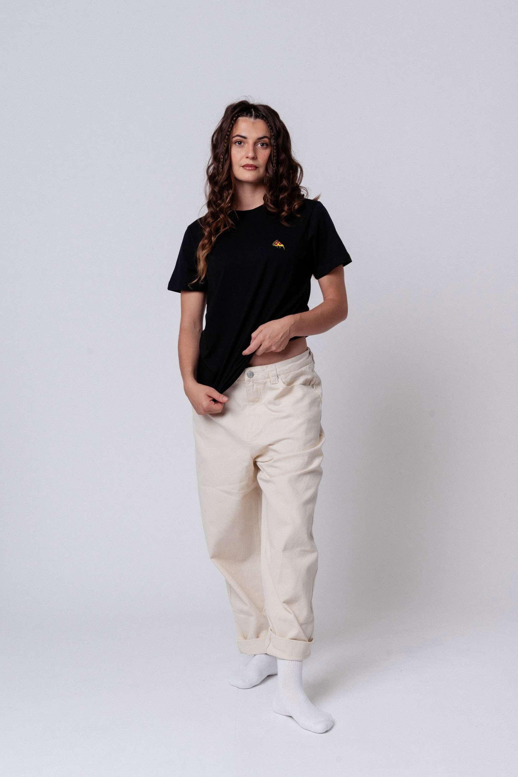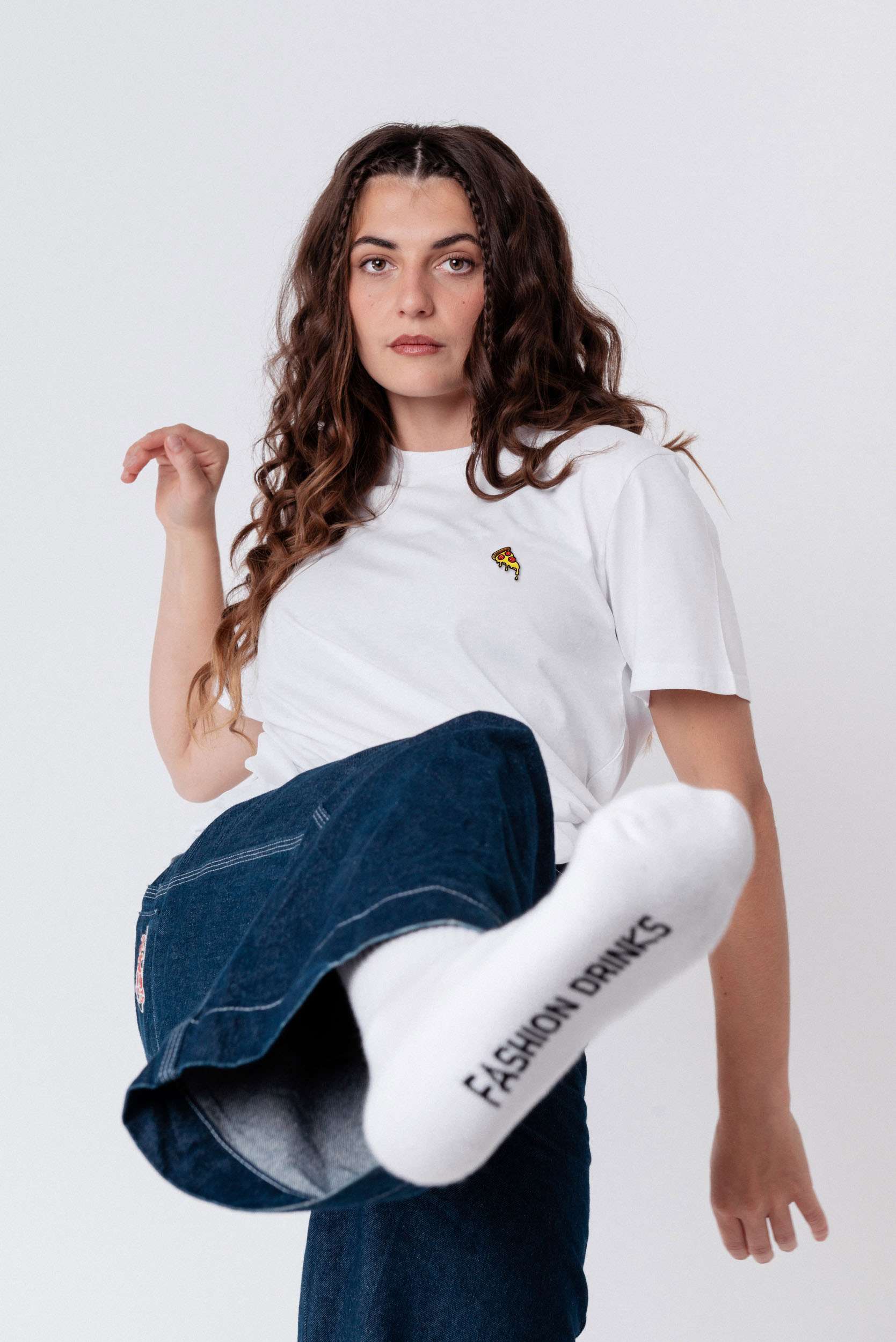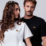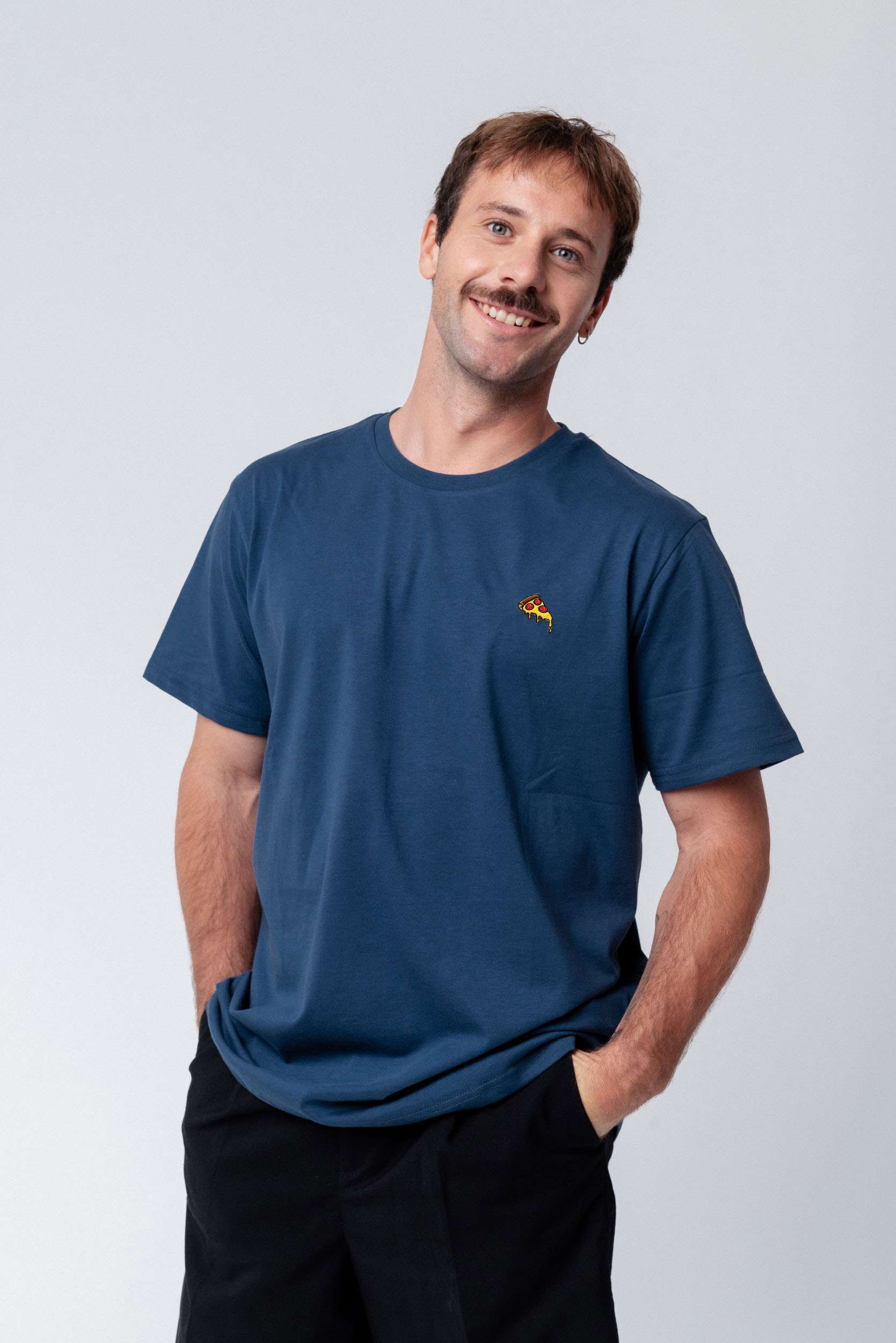 Besticktes Bio Baumwoll Unisex T-Shirt mit schwerem Stoff (190gsm) und gesticktem Pizza Design