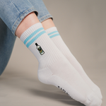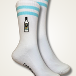 Super hochwertige Bio Baumwoll Crew Socken mit gesticktem offiziellem Mangaroca Batida de Côco® Design