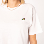Super hochwertiges Bio Baumwoll Cropped T-Shirt mit gesticktem Hot Dog  Design in drei verschiedenen Schnitt-Varianten: Ripped, Regular & Oversized