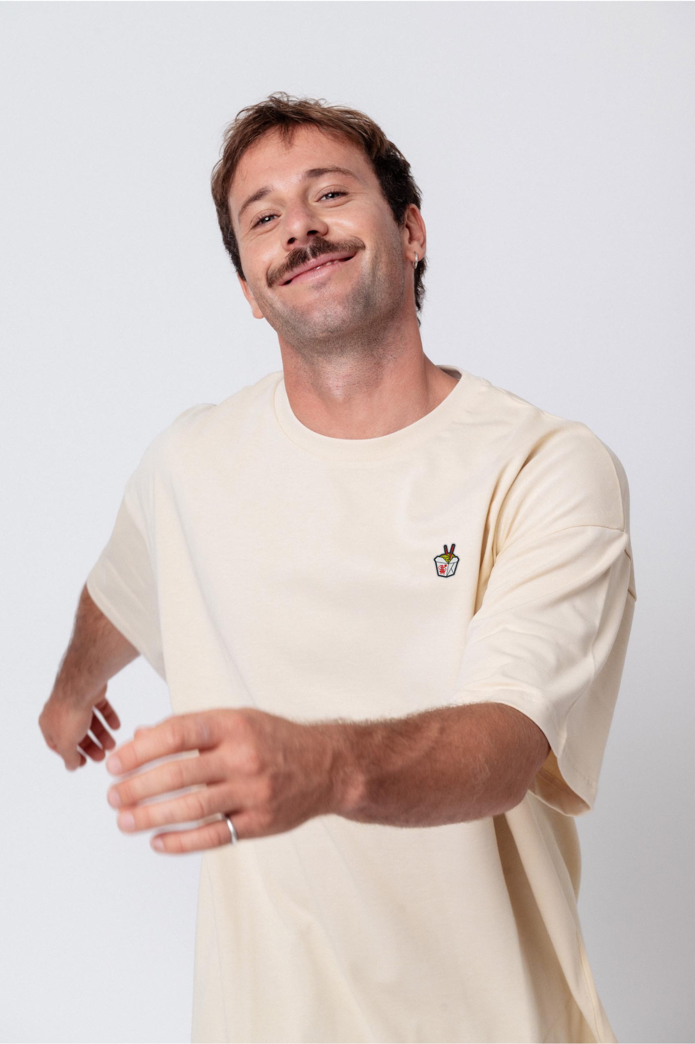 Heavy Oversized Bio Baumwoll T-Shirt mit extra schwerem Stoff (230gsm) und gesticktem Noodlebox Design