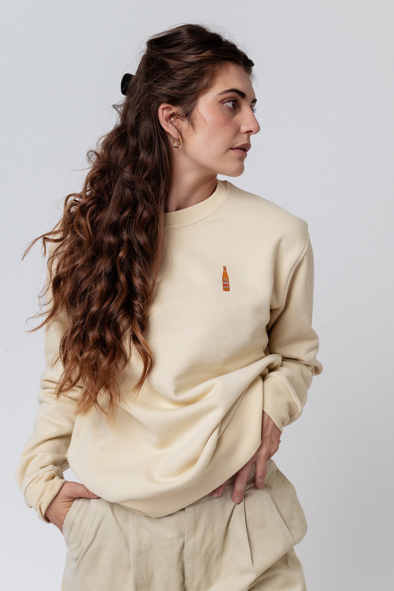 Bestickter Bio Baumwoll Unisex Pullover mit schwerem Stoff (320gsm) und der offiziellen gestickten  Somersby Sinaasappelsprits Fles