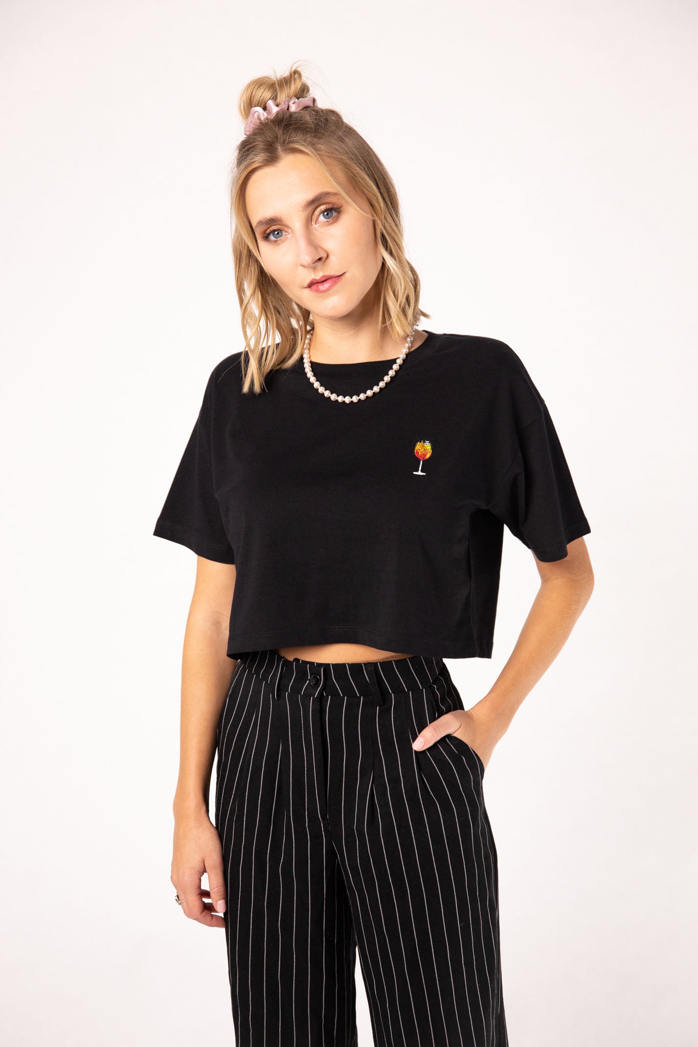 Spritz | Besticktes Bio Baumwoll Cropped T-Shirt