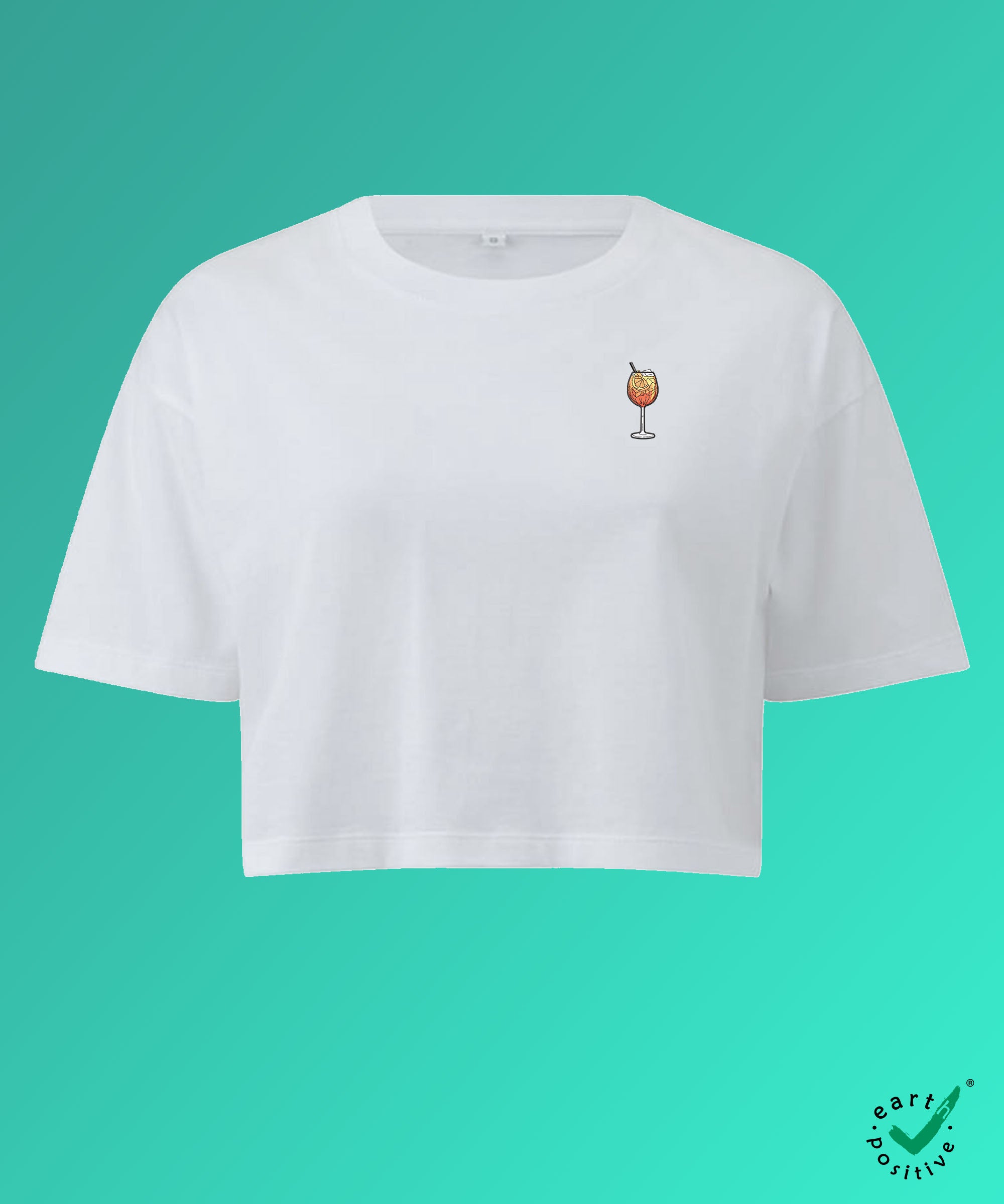 Super hochwertiges Bio Baumwoll Cropped T-Shirt mit gesticktem Spritz Design in drei verschiedenen Schnitt-Varianten: Ripped, Regular & Oversized