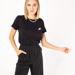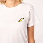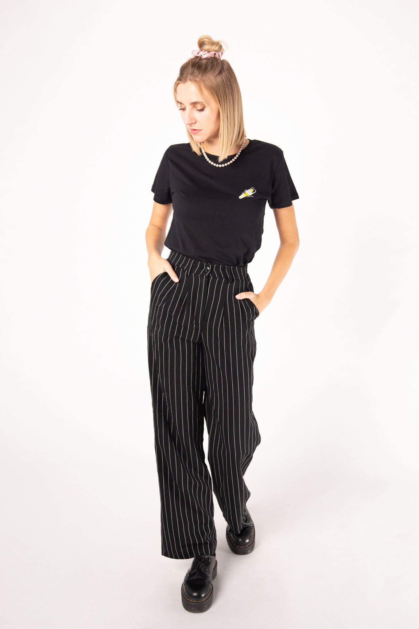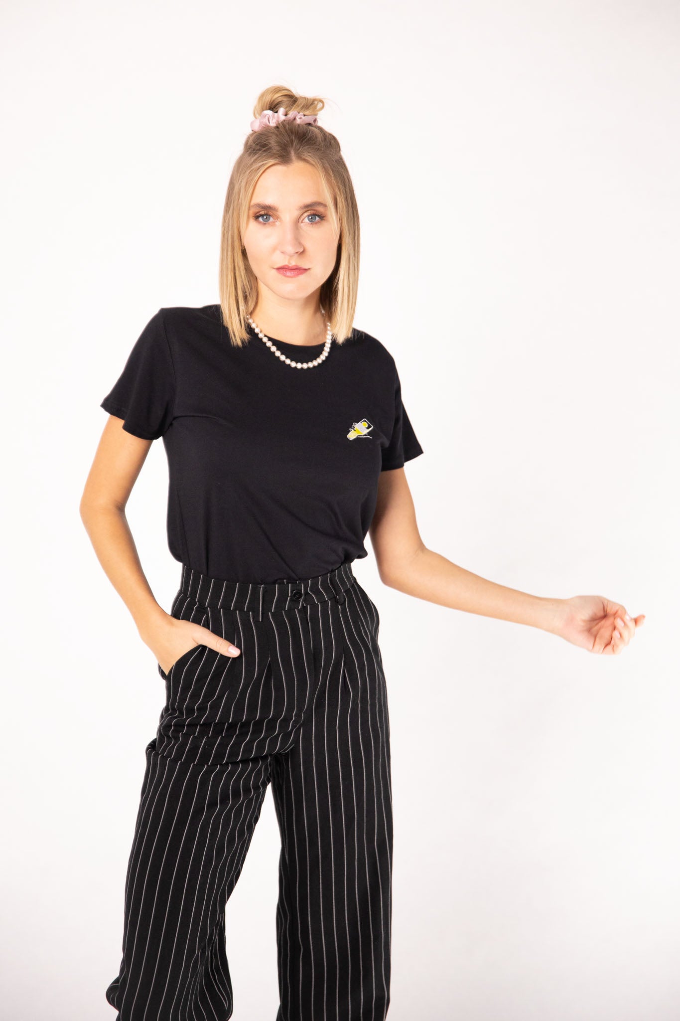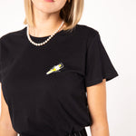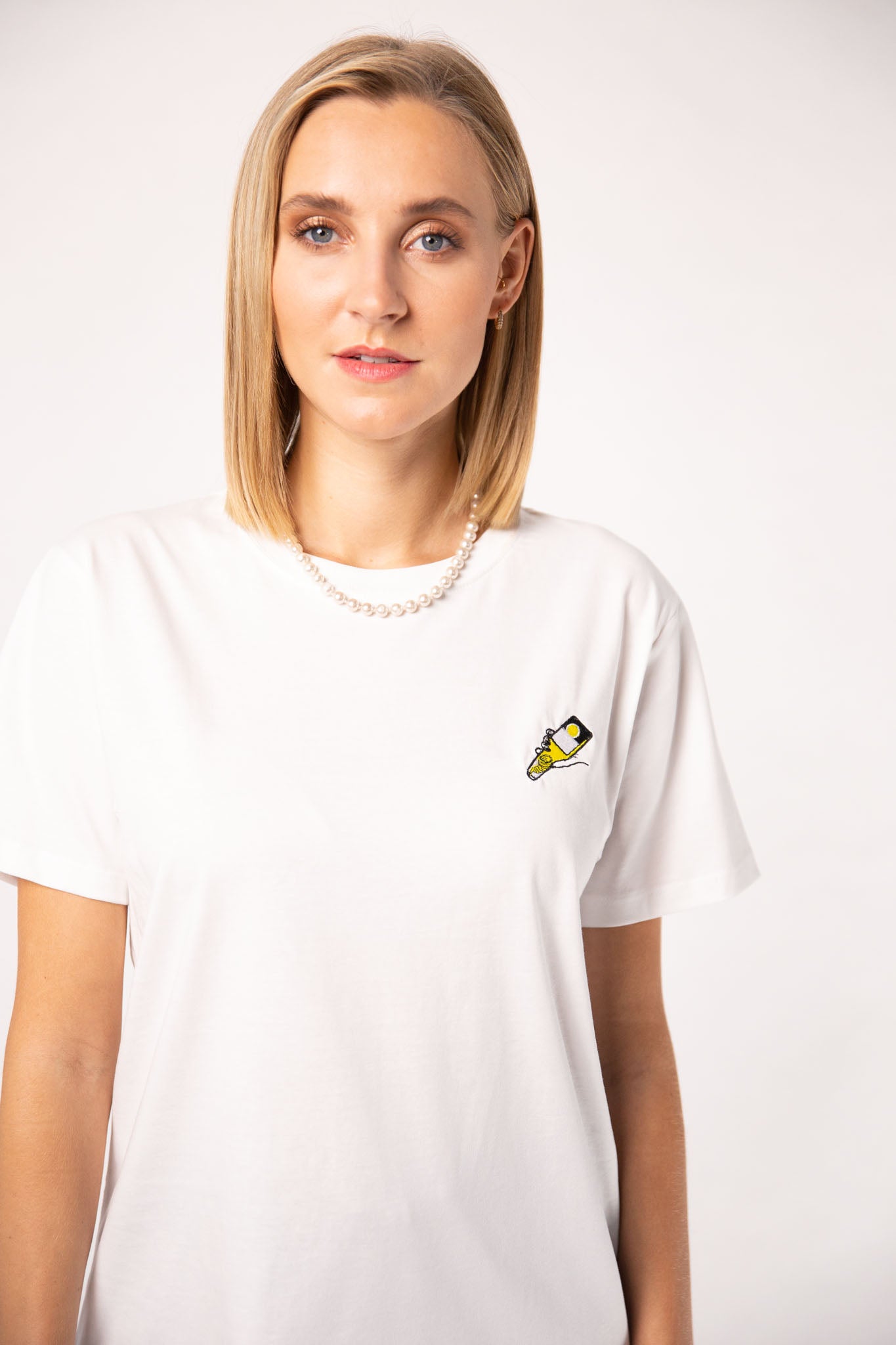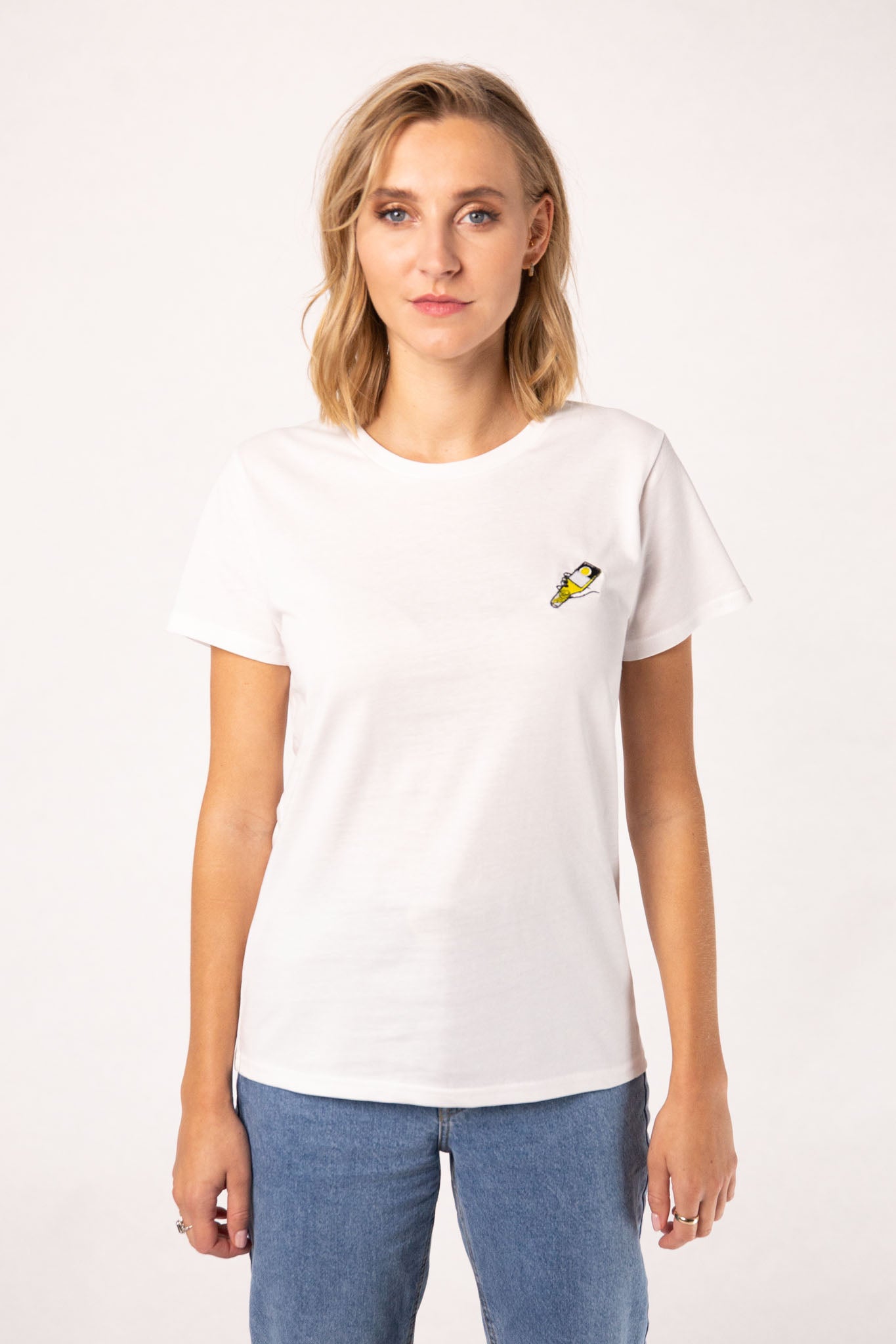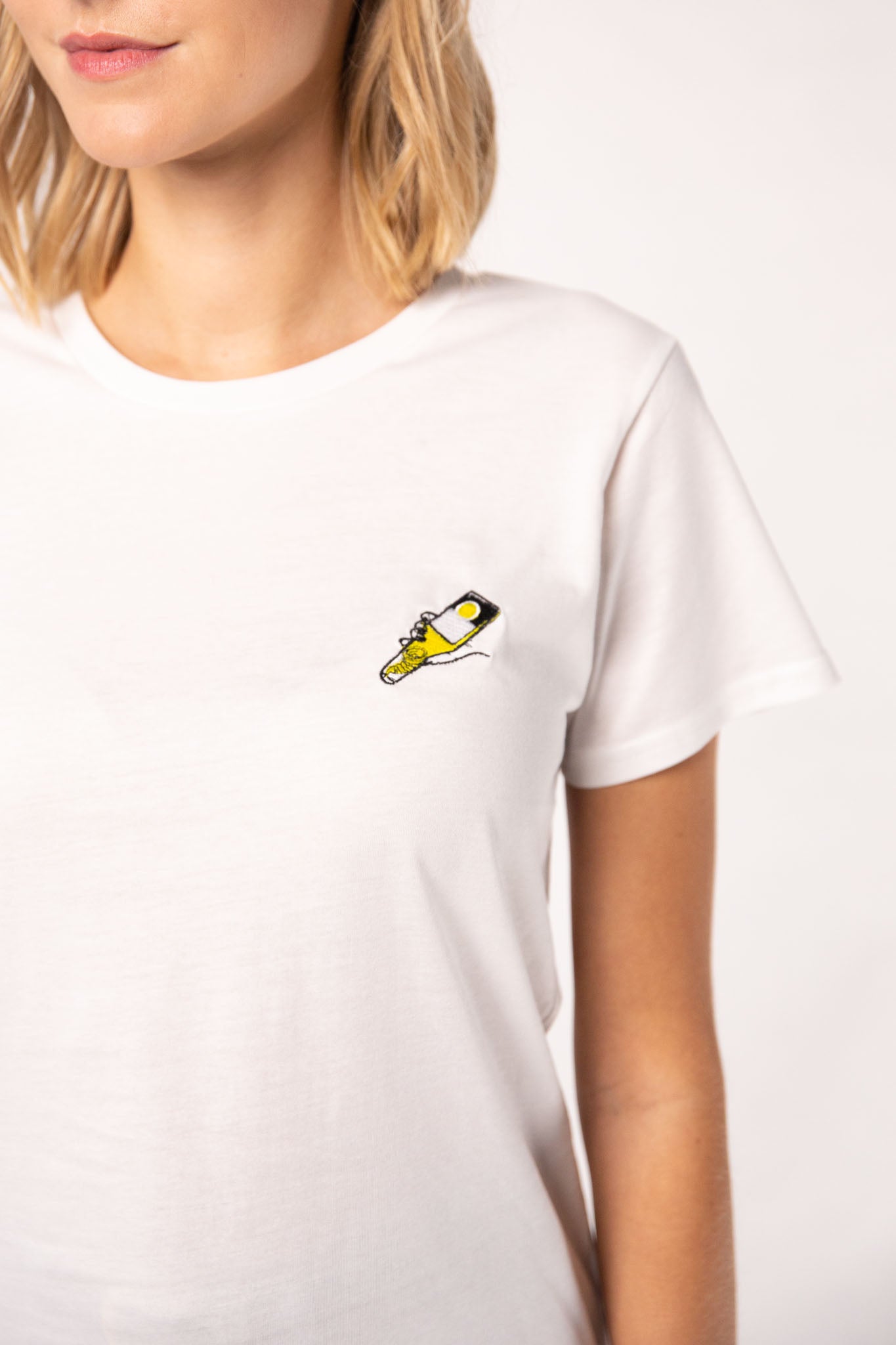 Superhoogwaardig biologisch katoenen dames t-shirt met uiterst comfortabele stof (155gsm) en geborduurd tornadodessin.
