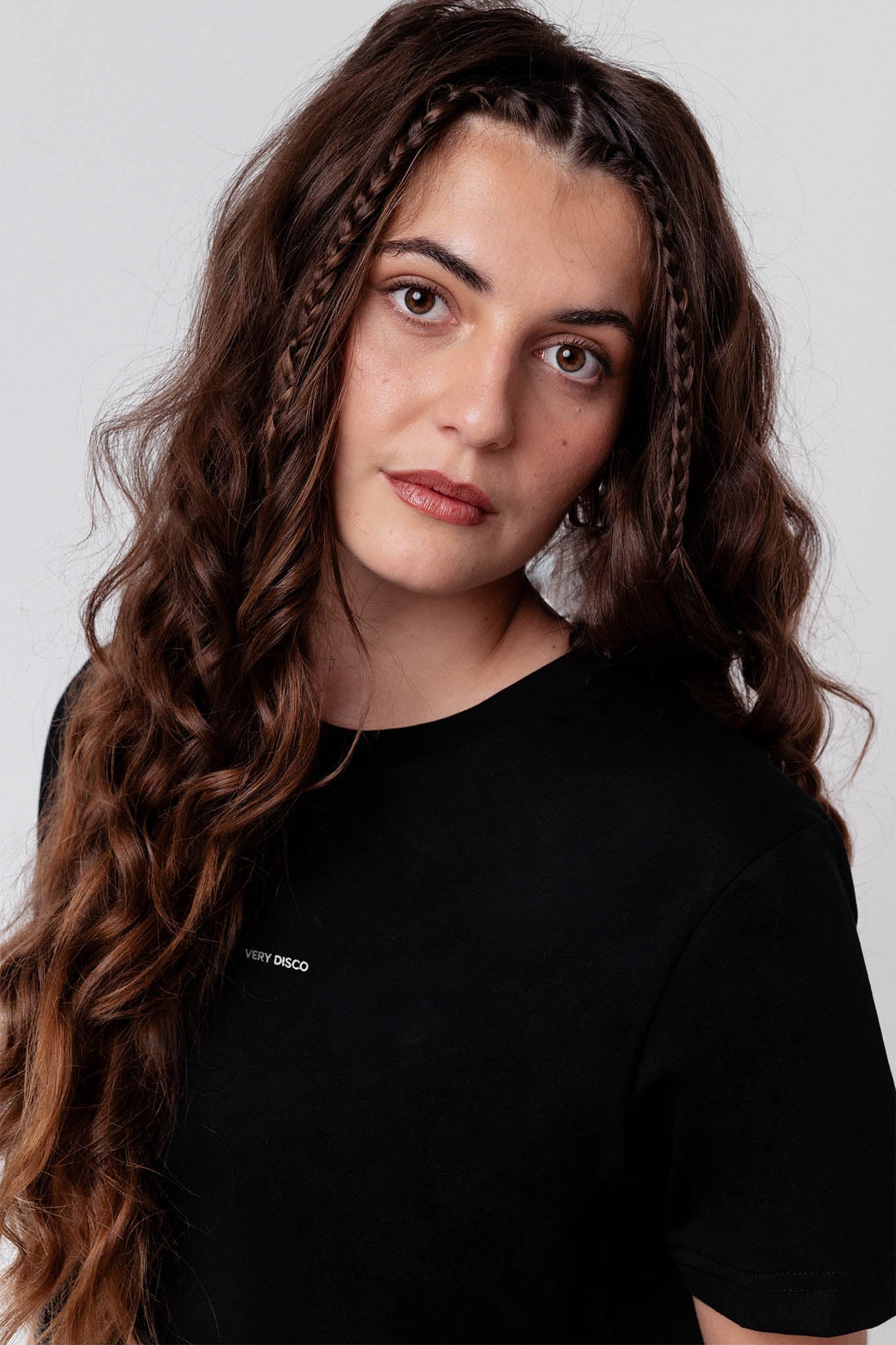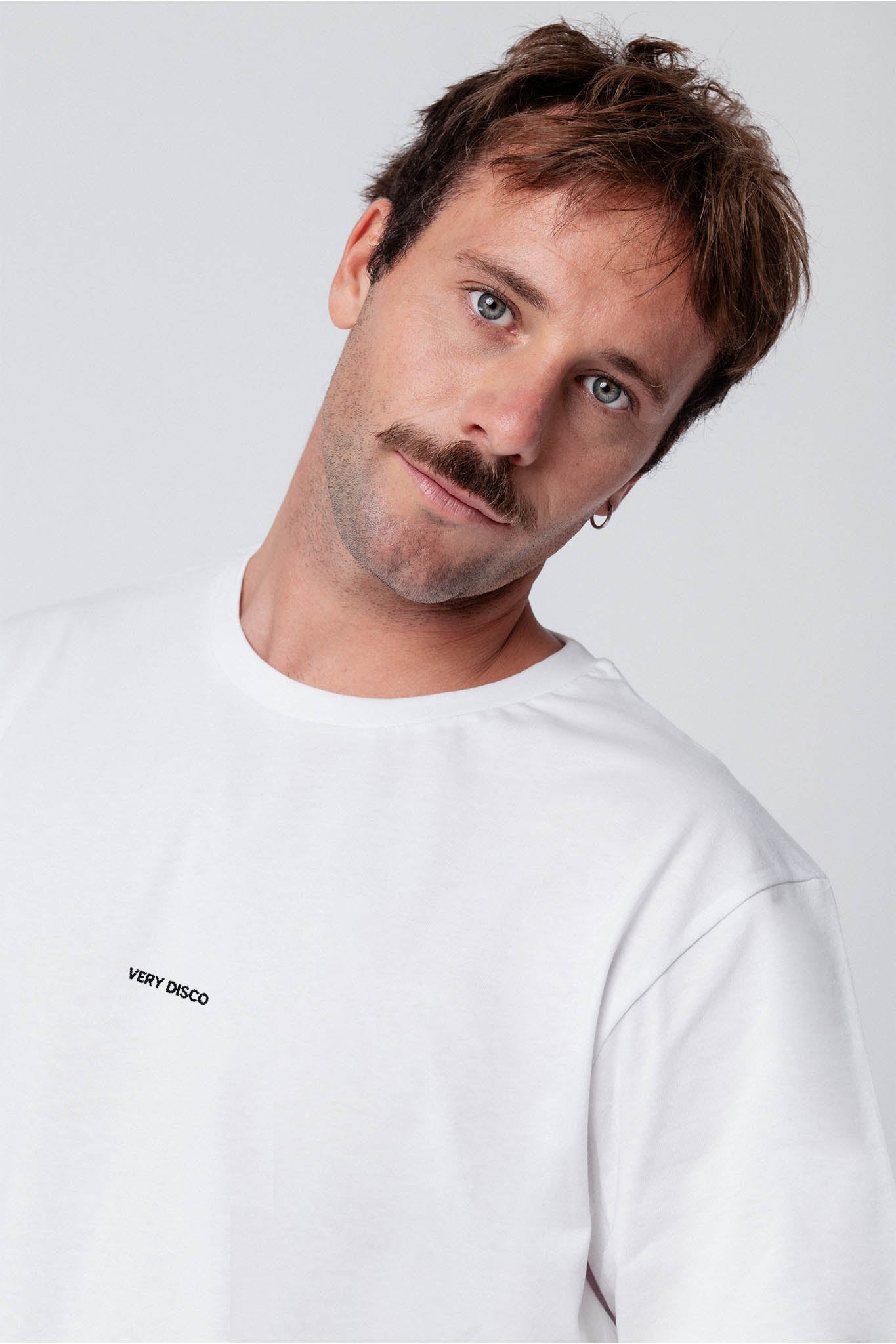 Besticktes Bio Baumwoll Unisex T-Shirt mit schwerem Stoff (190gsm) und gesticktem VERY DISCO Schriftzug
