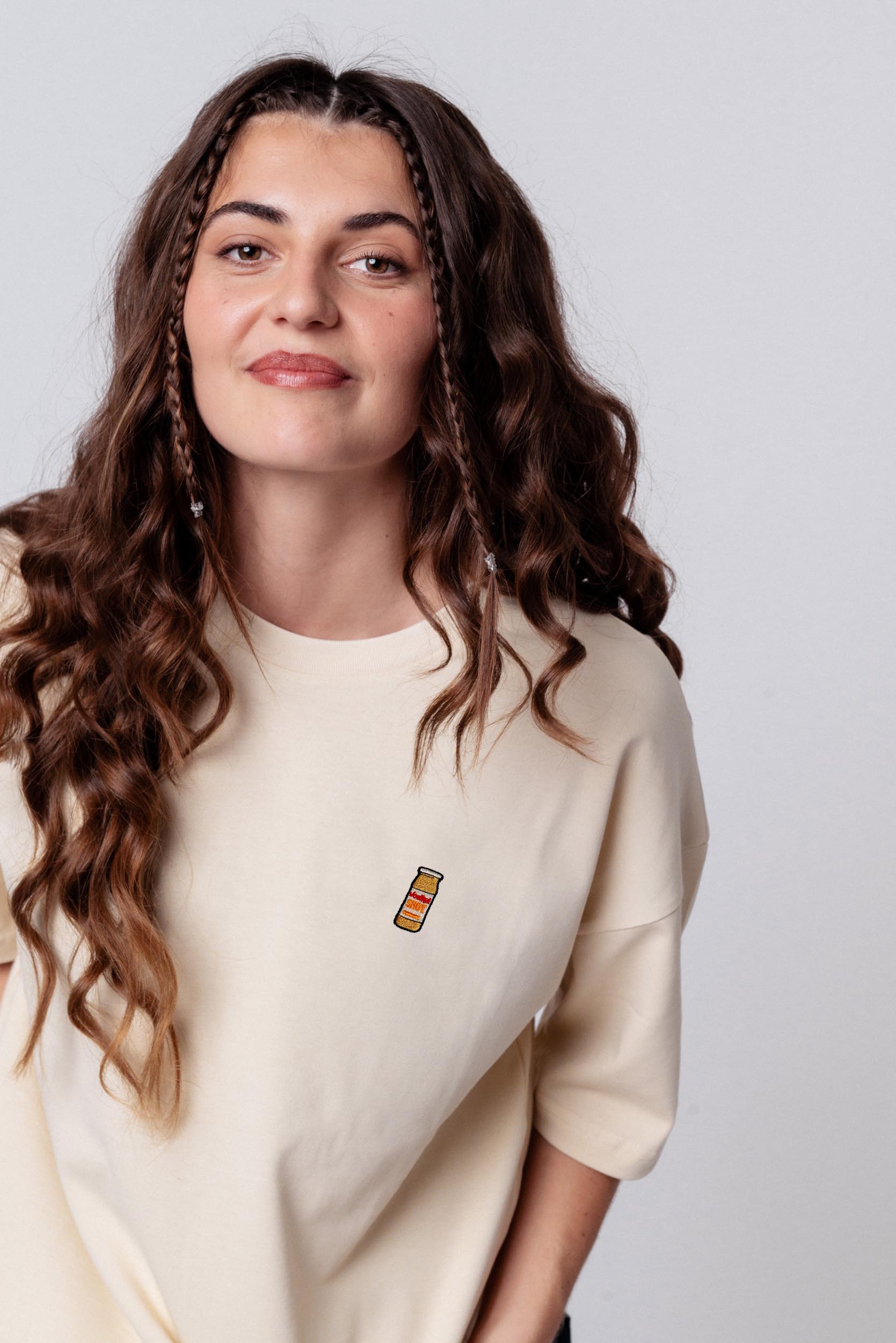 Heavy Oversized Bio Baumwoll T-Shirt mit extra schwerem Stoff (230gsm) und offiziellem gesticktem Voelkel Ingwer Shot  Design