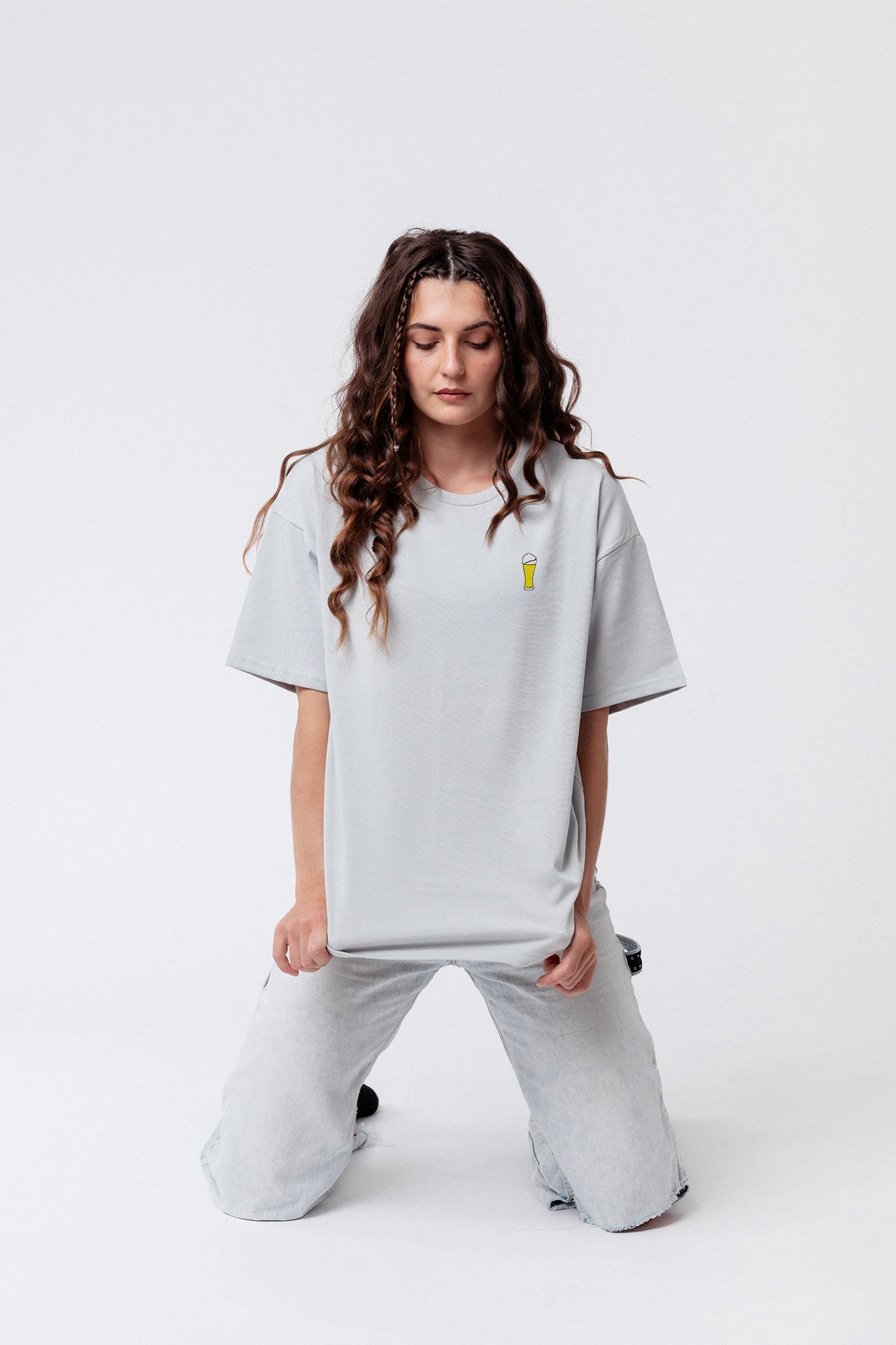 Heavy Oversized Bio Baumwoll T-Shirt mit extra schwerem Stoff (230gsm) und dem gestickten Weißbier Design