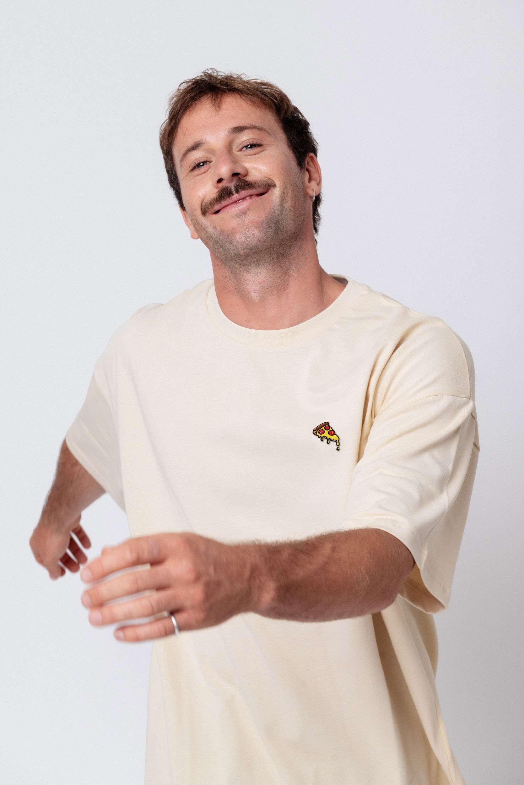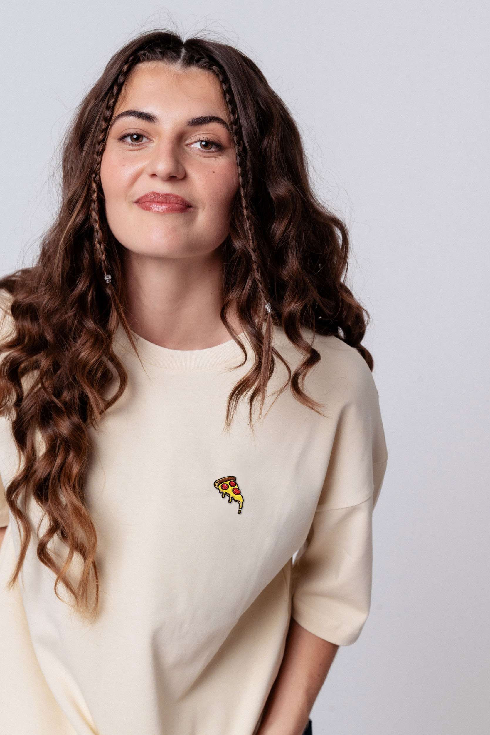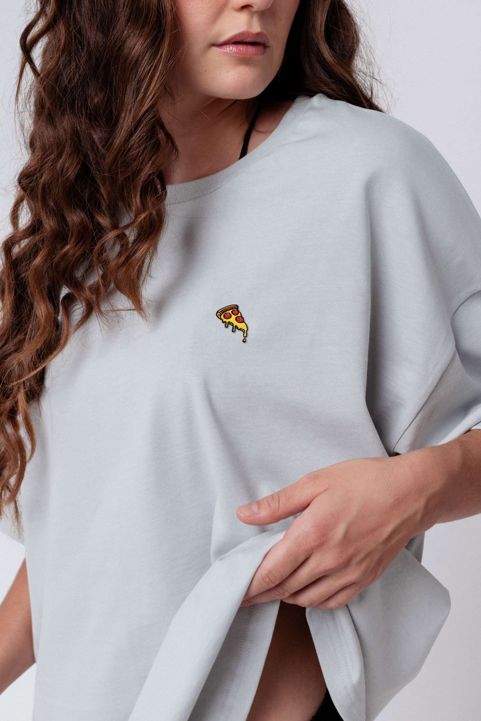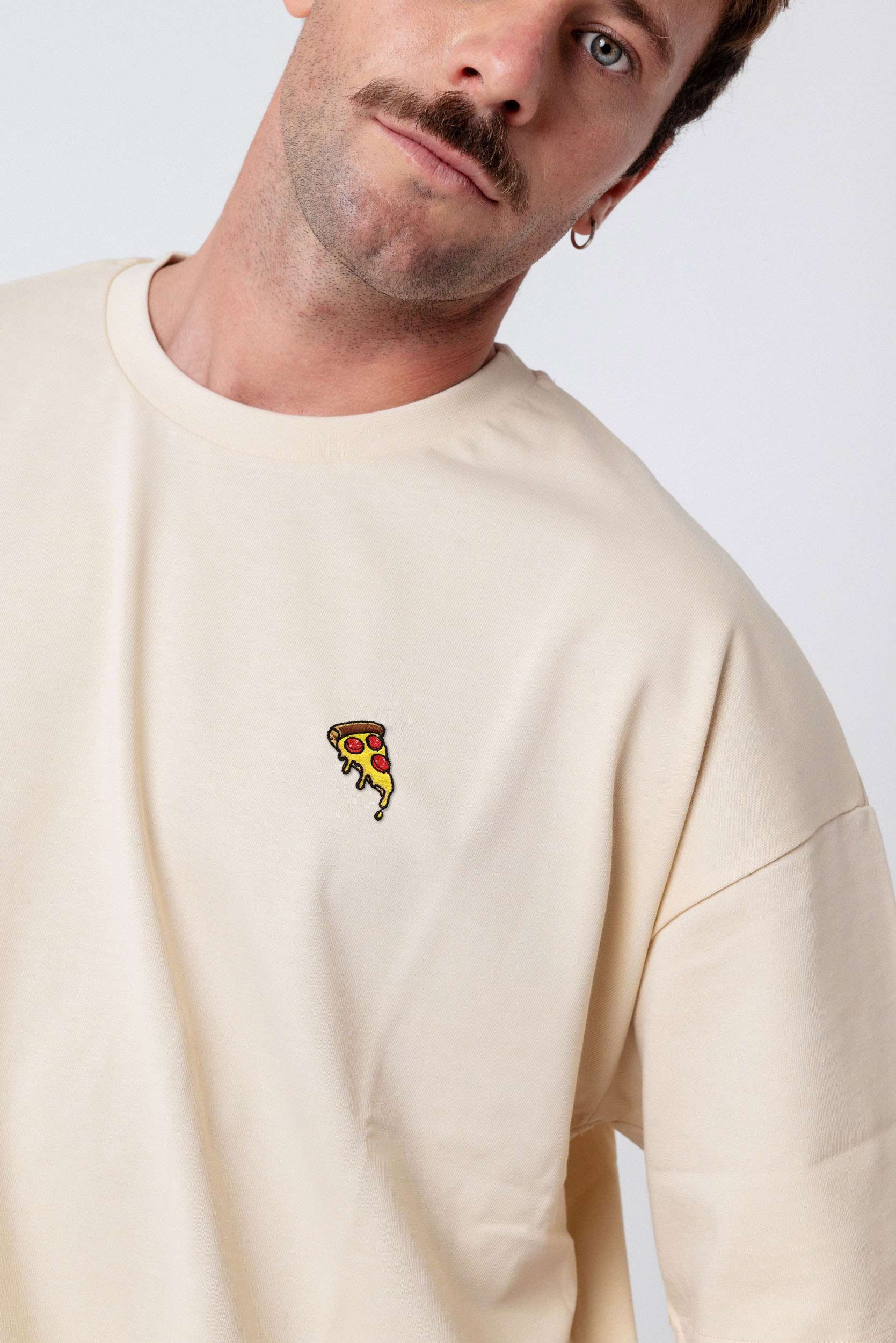 Heavy Oversized Bio Baumwoll T-Shirt mit extra schwerem Stoff (230gsm) und gesticktem Pizza Design