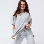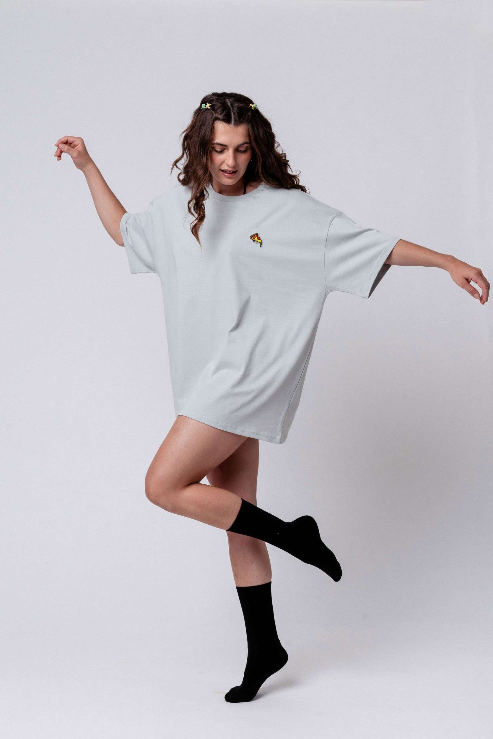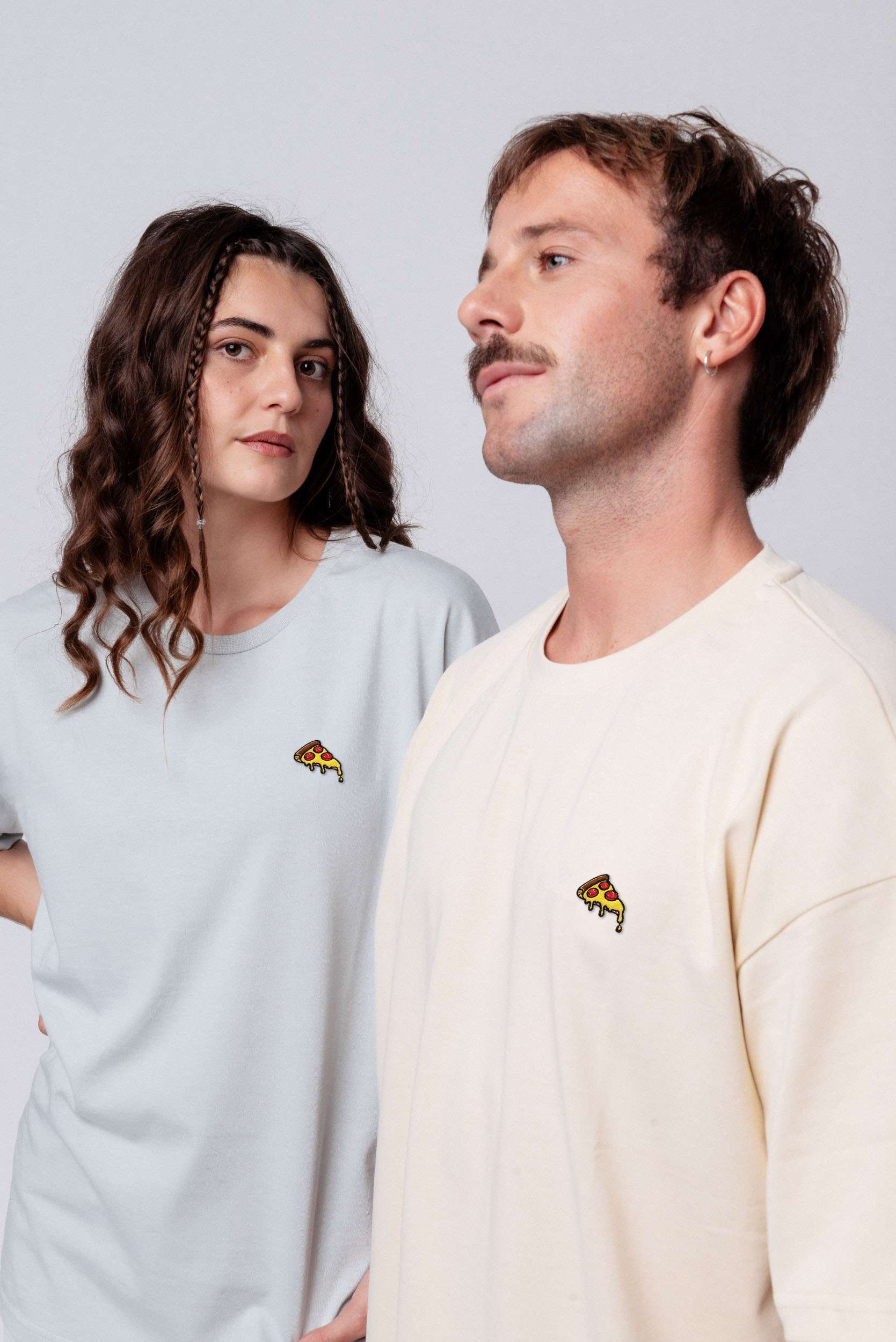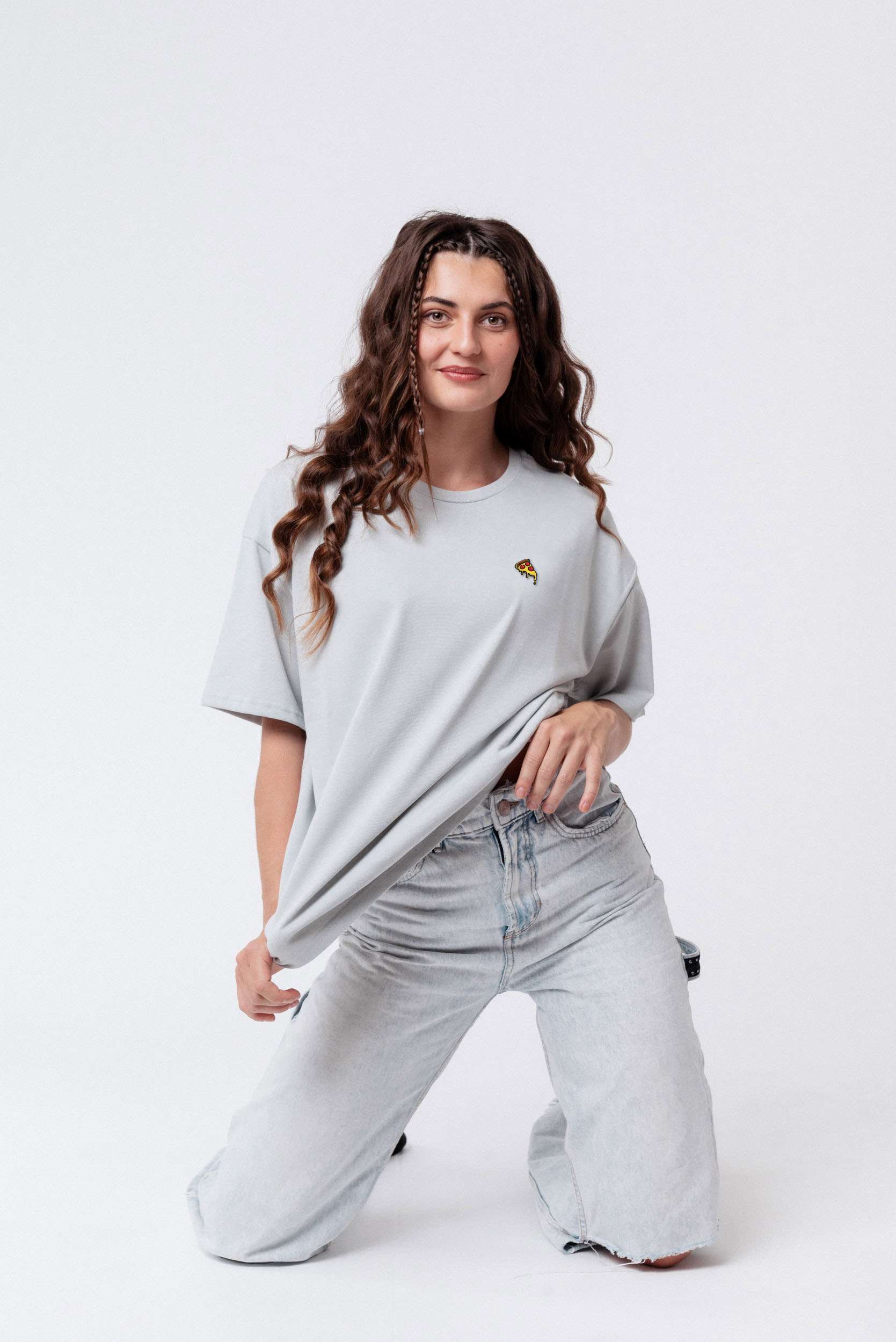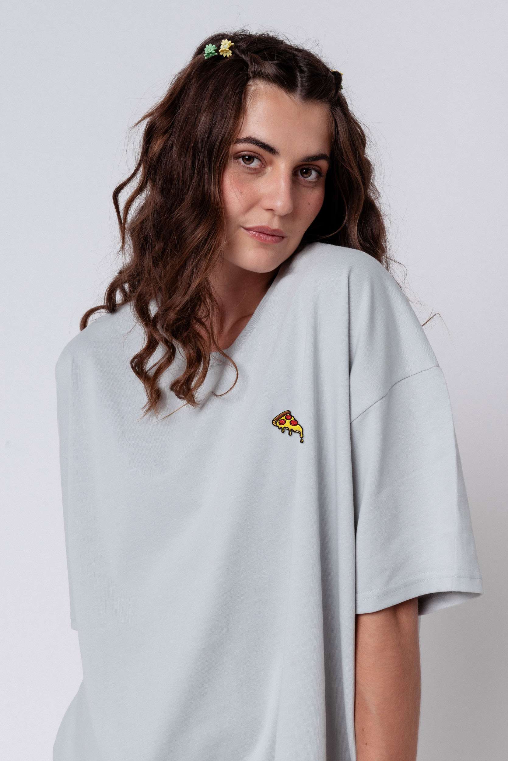 Heavy Oversized Bio Baumwoll T-Shirt mit extra schwerem Stoff (230gsm) und gesticktem Pizza Design
