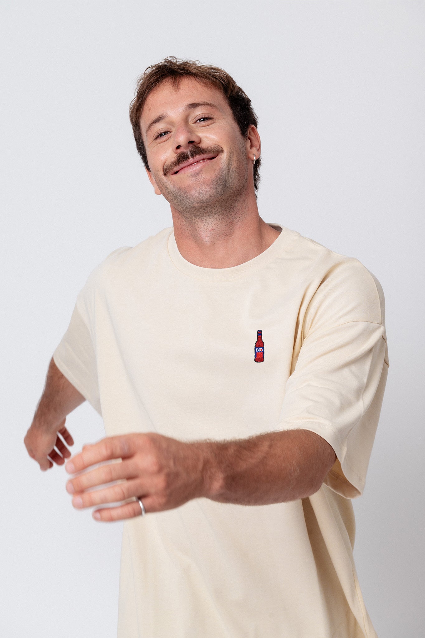 Heavy Oversized Bio Baumwoll T-Shirt mit extra schwerem Stoff (230gsm) und der offiziellen gestickten Bionade Flasche