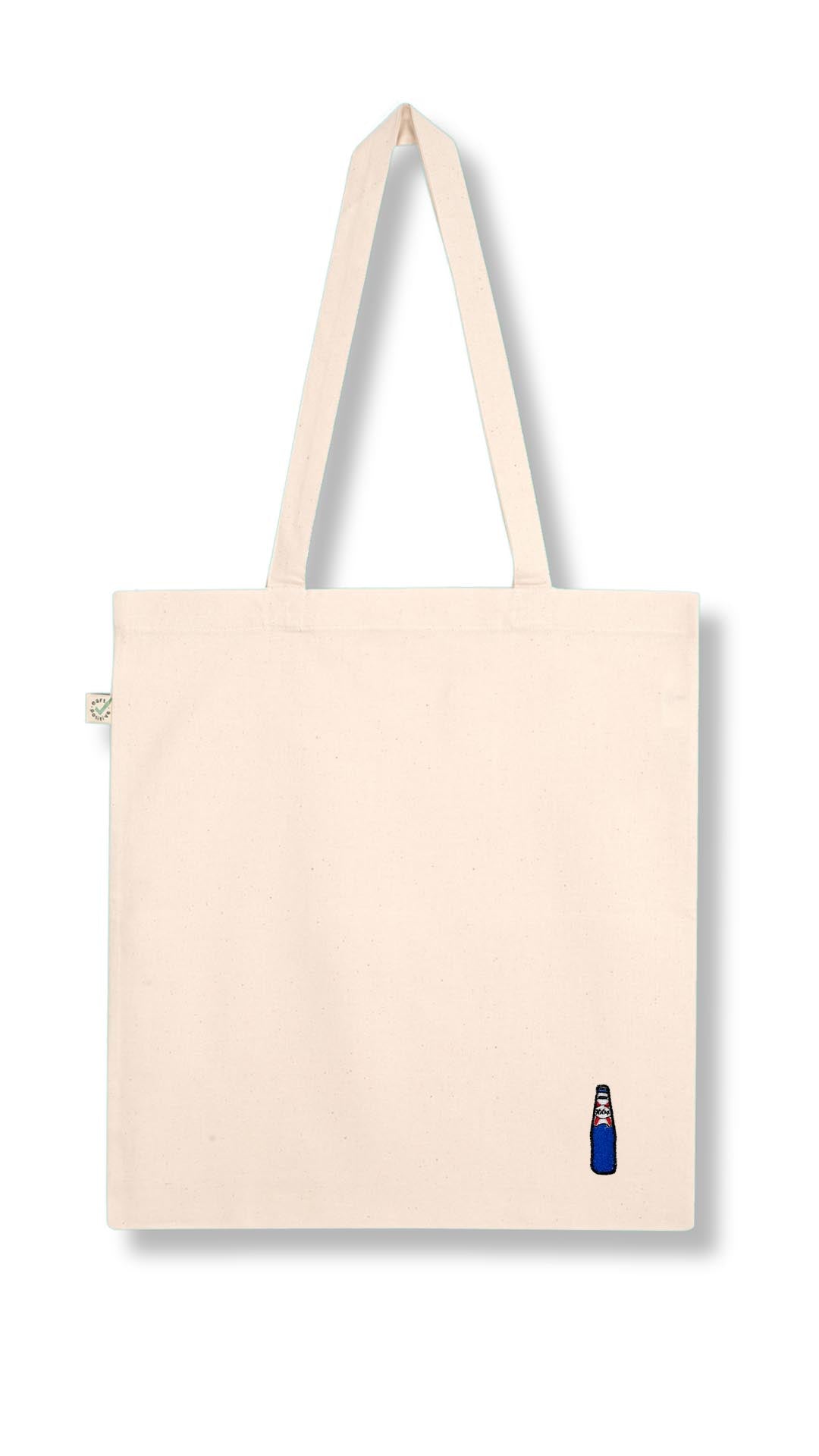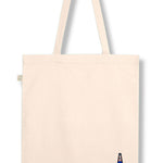 Bestickte, fair produzierte Bio-Baumwoll-Tragetasche im blanc 1664 Design.