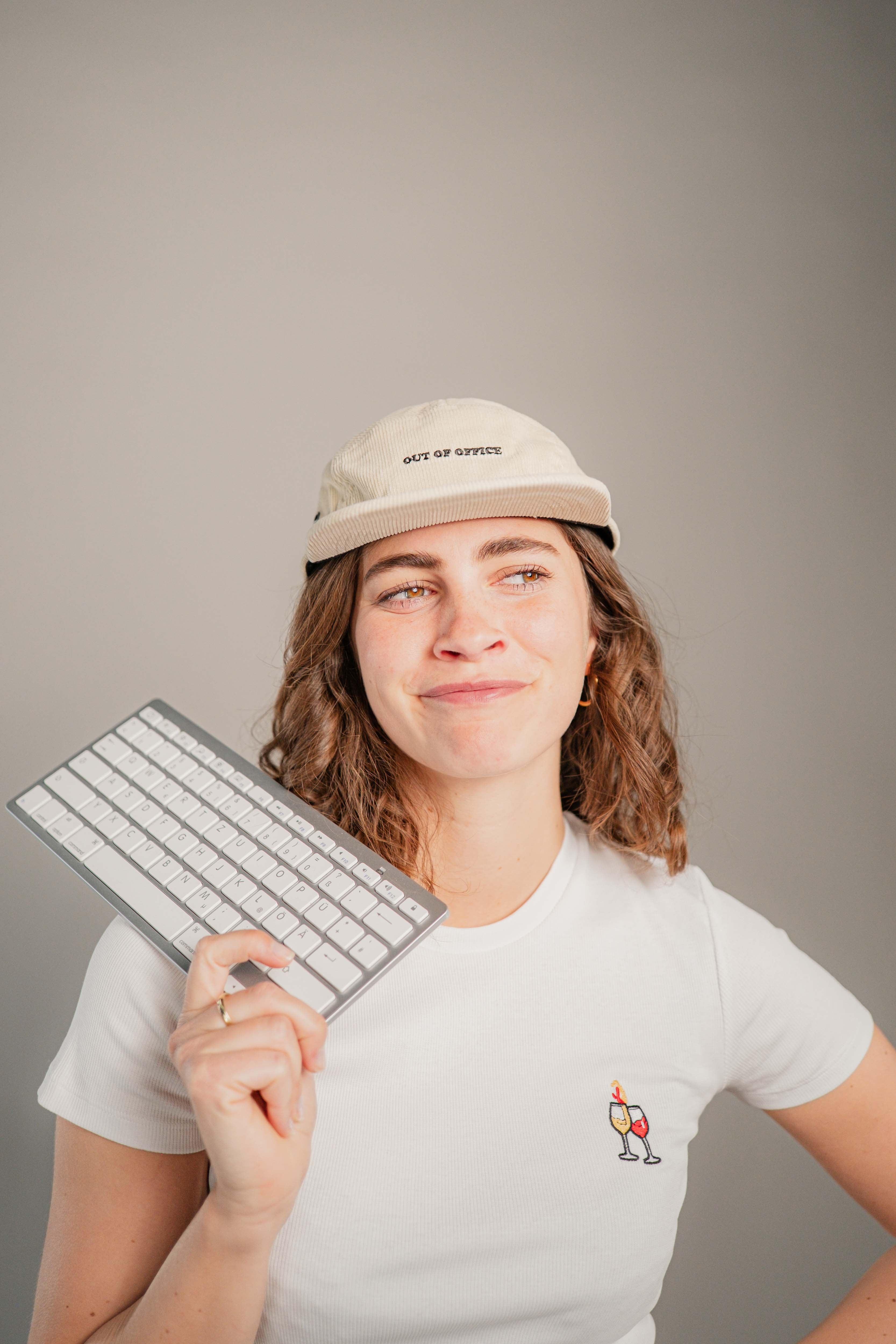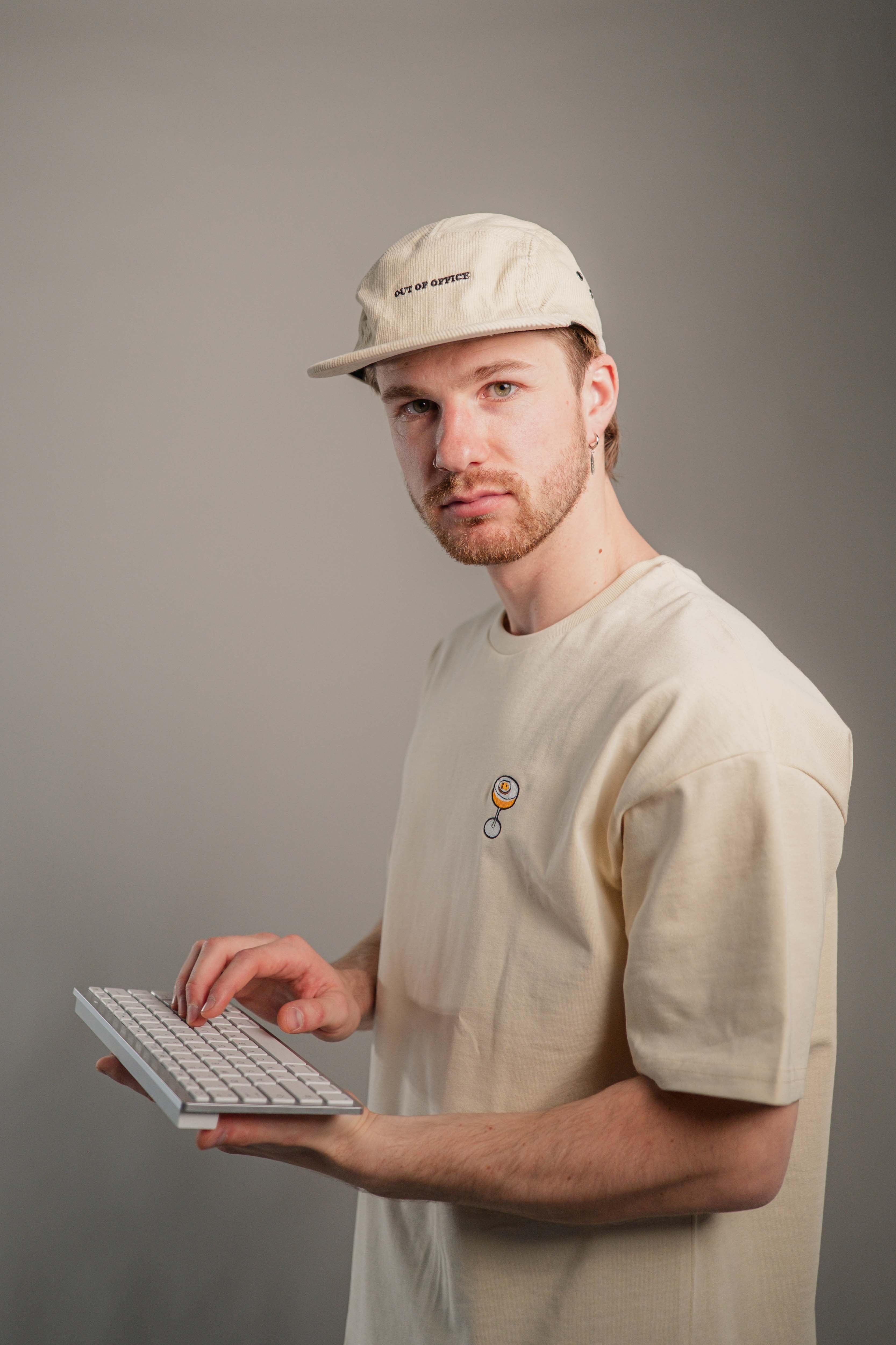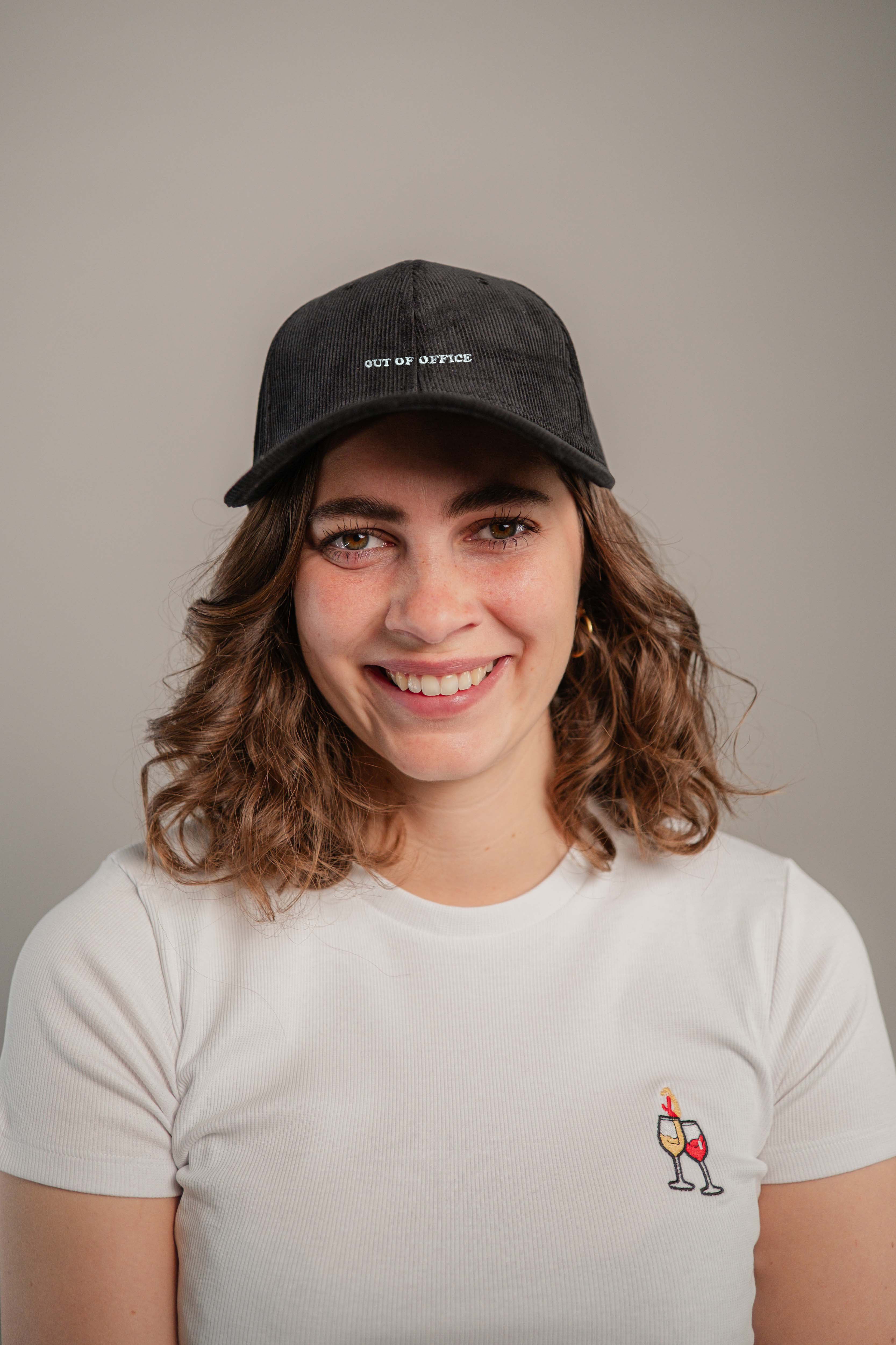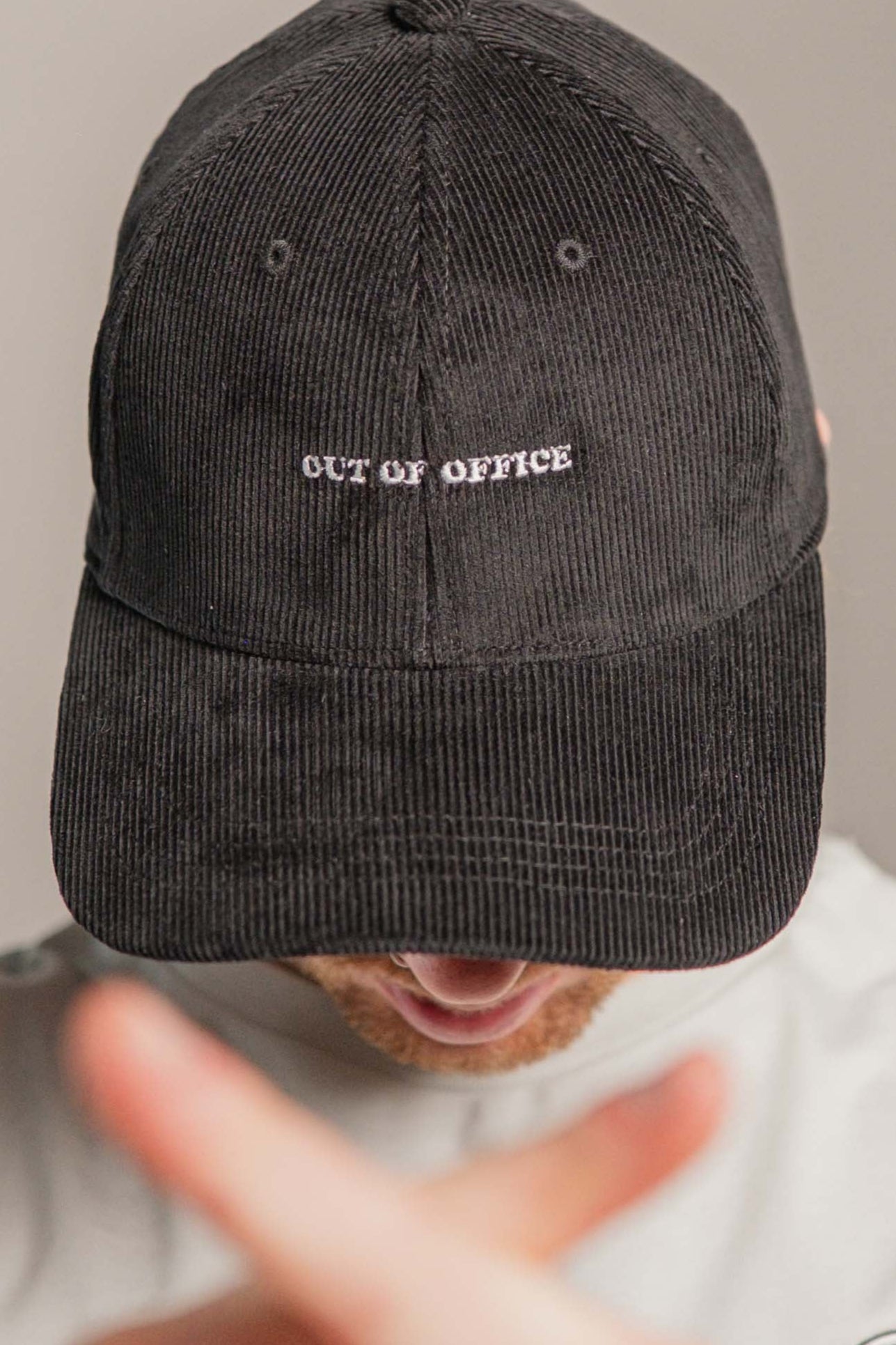 Super hochwertige Cord Cap aus 100% Bio Baumwolle mit gesticktem Out of Office Schriftzug vorne und kleinem gesticktem O.O.O. seitlich