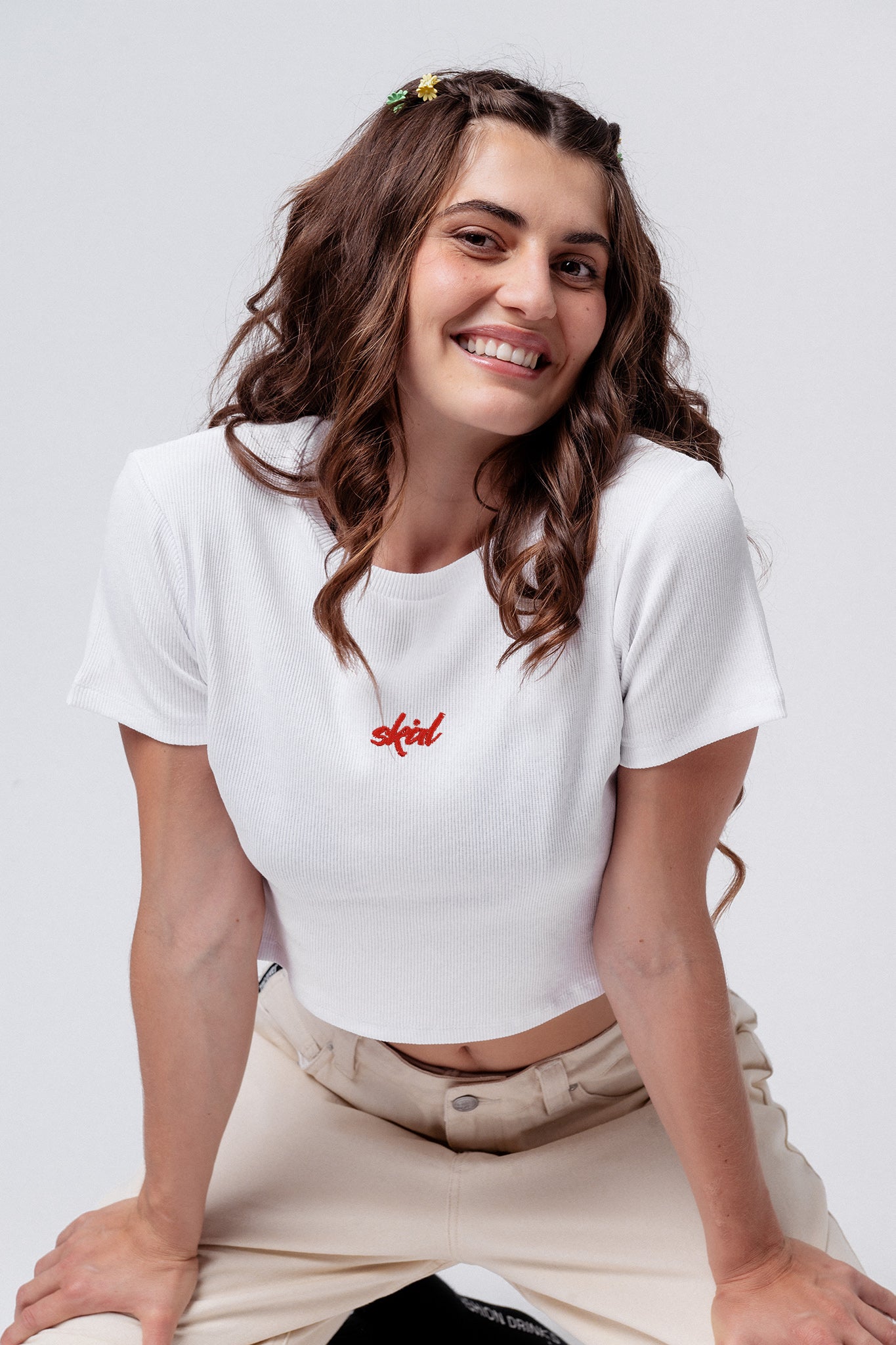 Erfahre mehr überunsere bestickten Bio Crop Tops