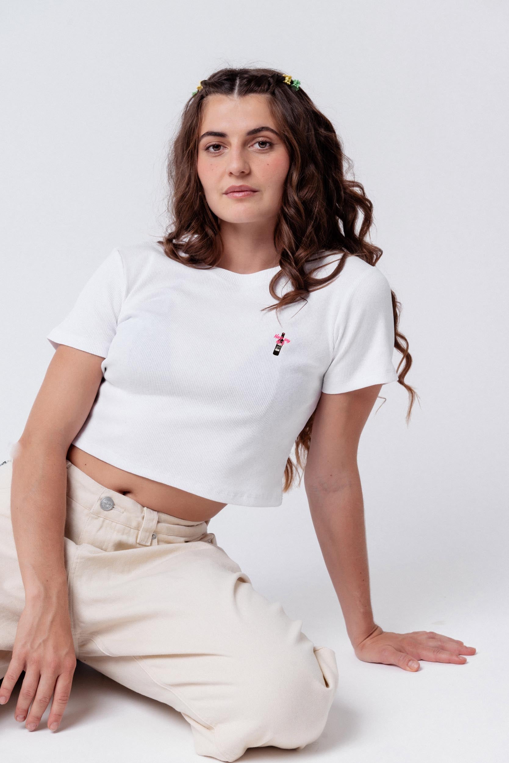 Erfahre mehr überunsere bestickten Bio Crop Tops