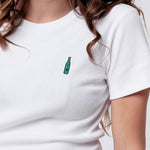 Super hochwertiges Bio Baumwoll Cropped T-Shirt mir der offiziell gestickten Pfeffi Flasche in drei verschiedenen Schnitt-Varianten: Ripped, Regular & Oversized