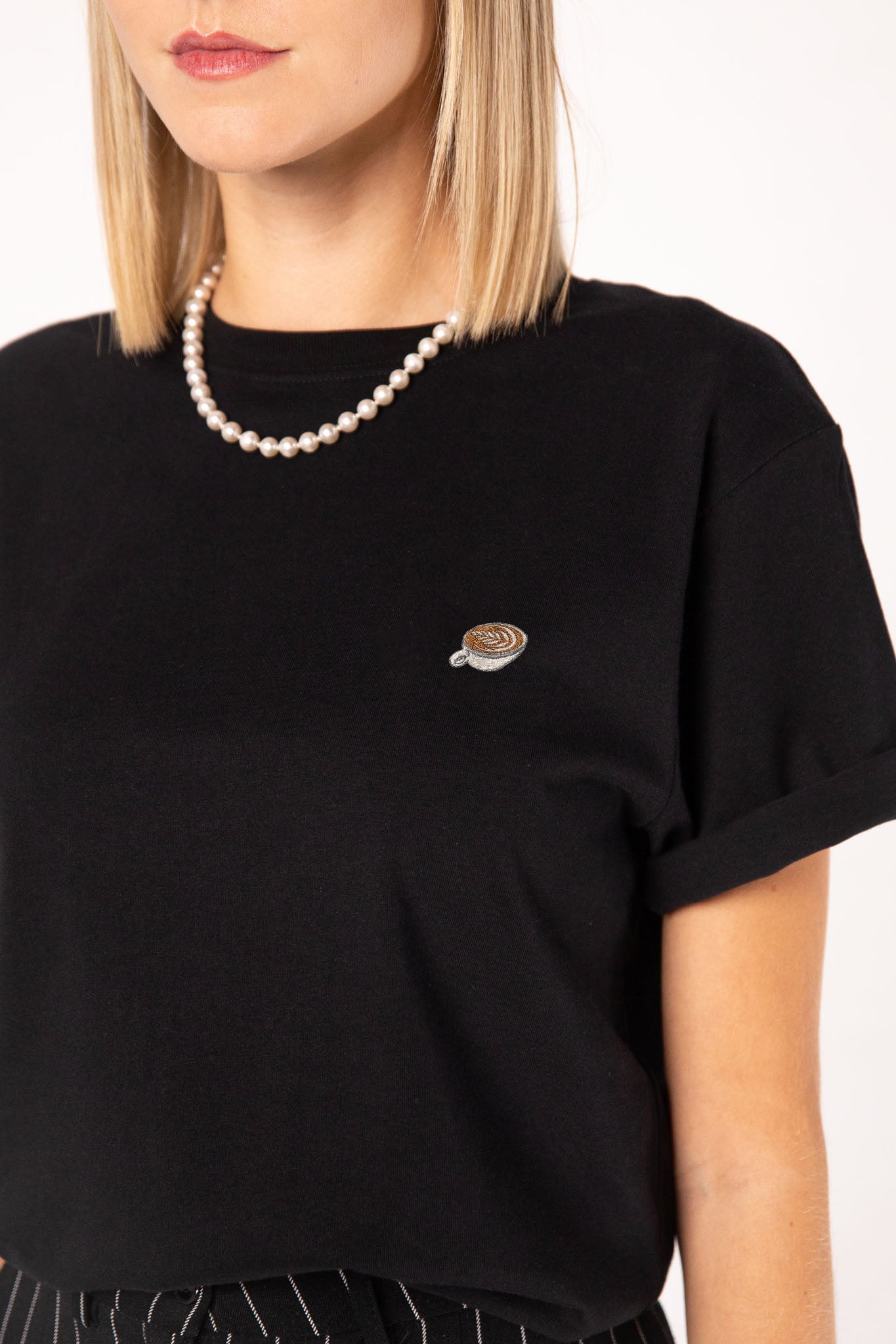 Flat White | Besticktes Bio Baumwoll Frauen T-Shirt