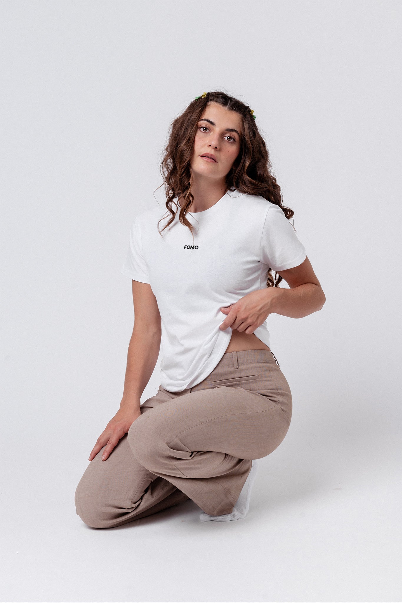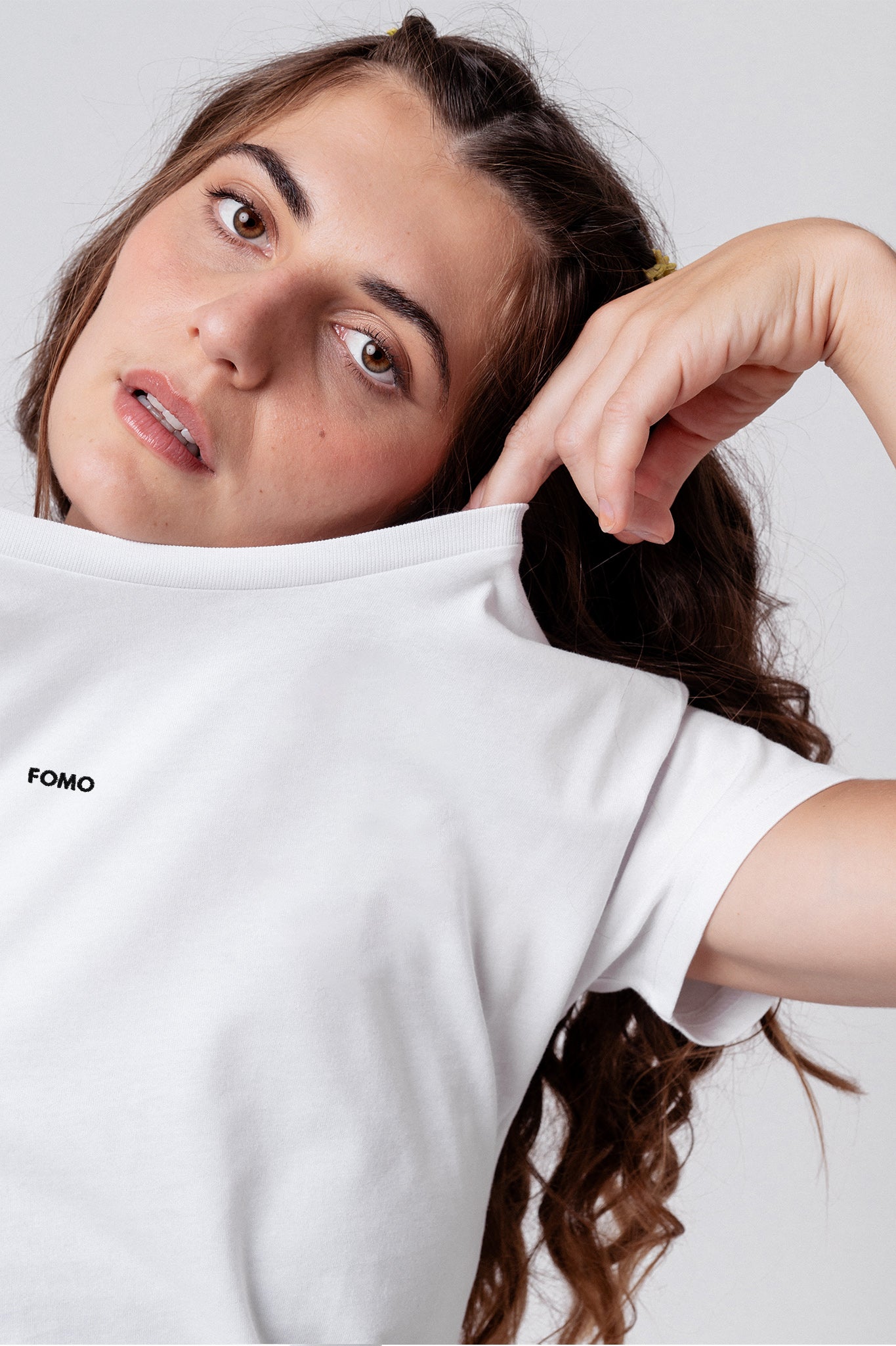 Besticktes Bio Baumwoll Frauen T-Shirt mit extrem angenehmen Stoff (155gsm) und gesticktem  FOMO (Fear of missing out) Belettering