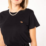 Besticktes Bio Baumwoll Frauen T-Shirt mit extrem angenehmen Stoff (155gsm) und gesticktem Rippchen Design