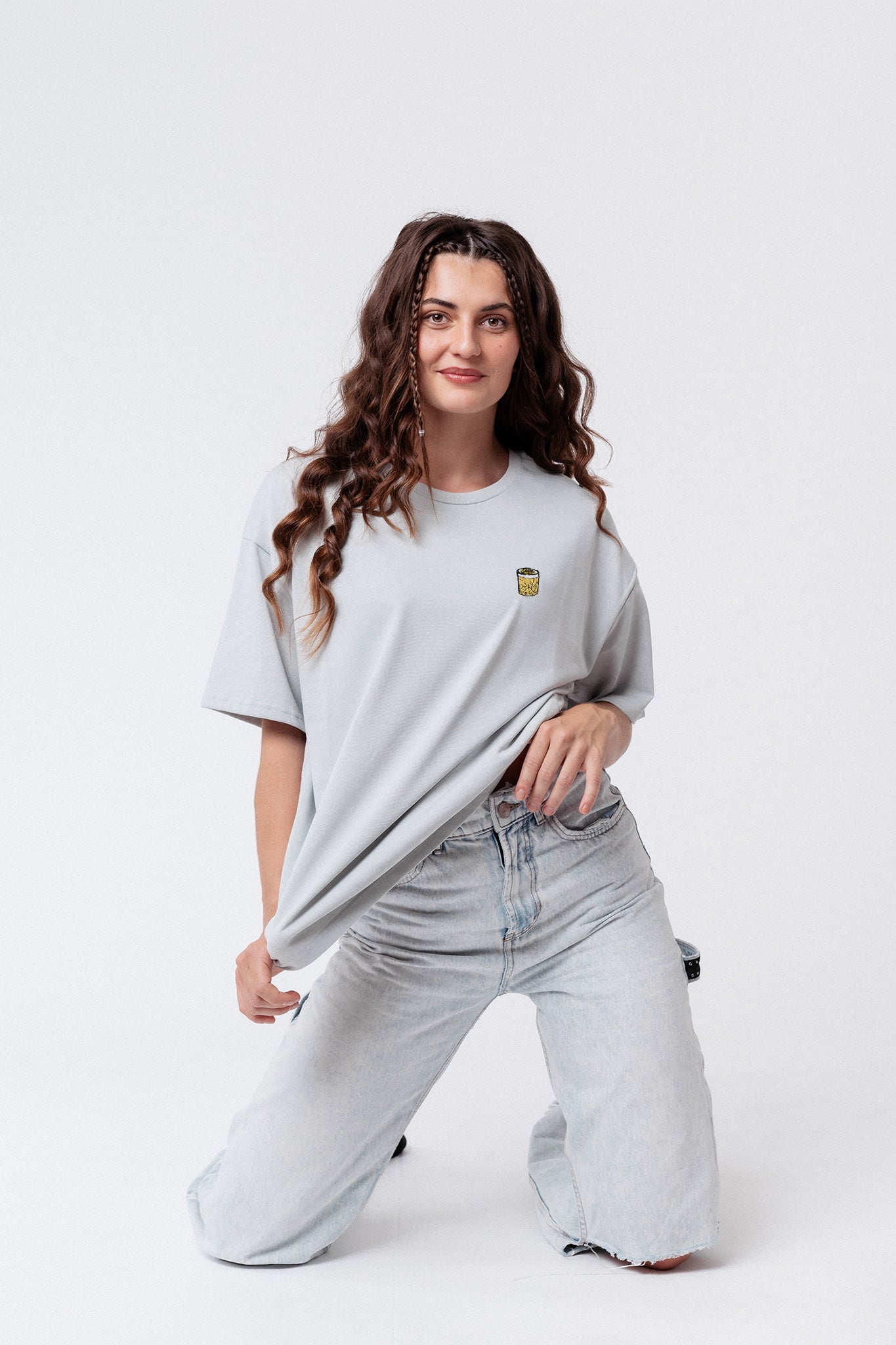 Heavy Oversized Bio Baumwoll T-Shirt mit extra schwerem Stoff (230gsm) und dem gestickten Whisky Sour Design