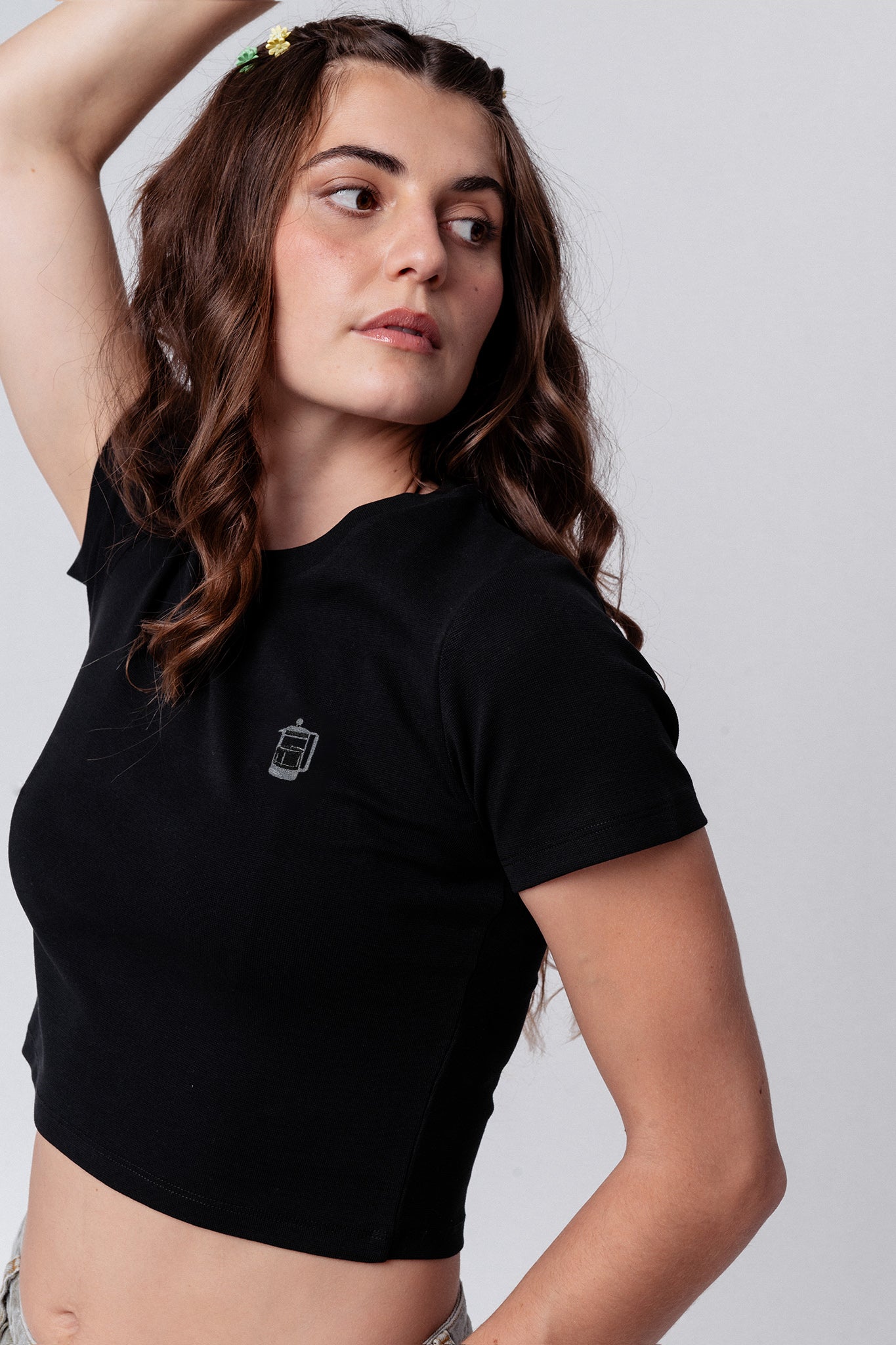 French Press | Besticktes Bio Baumwoll Cropped T-Shirt