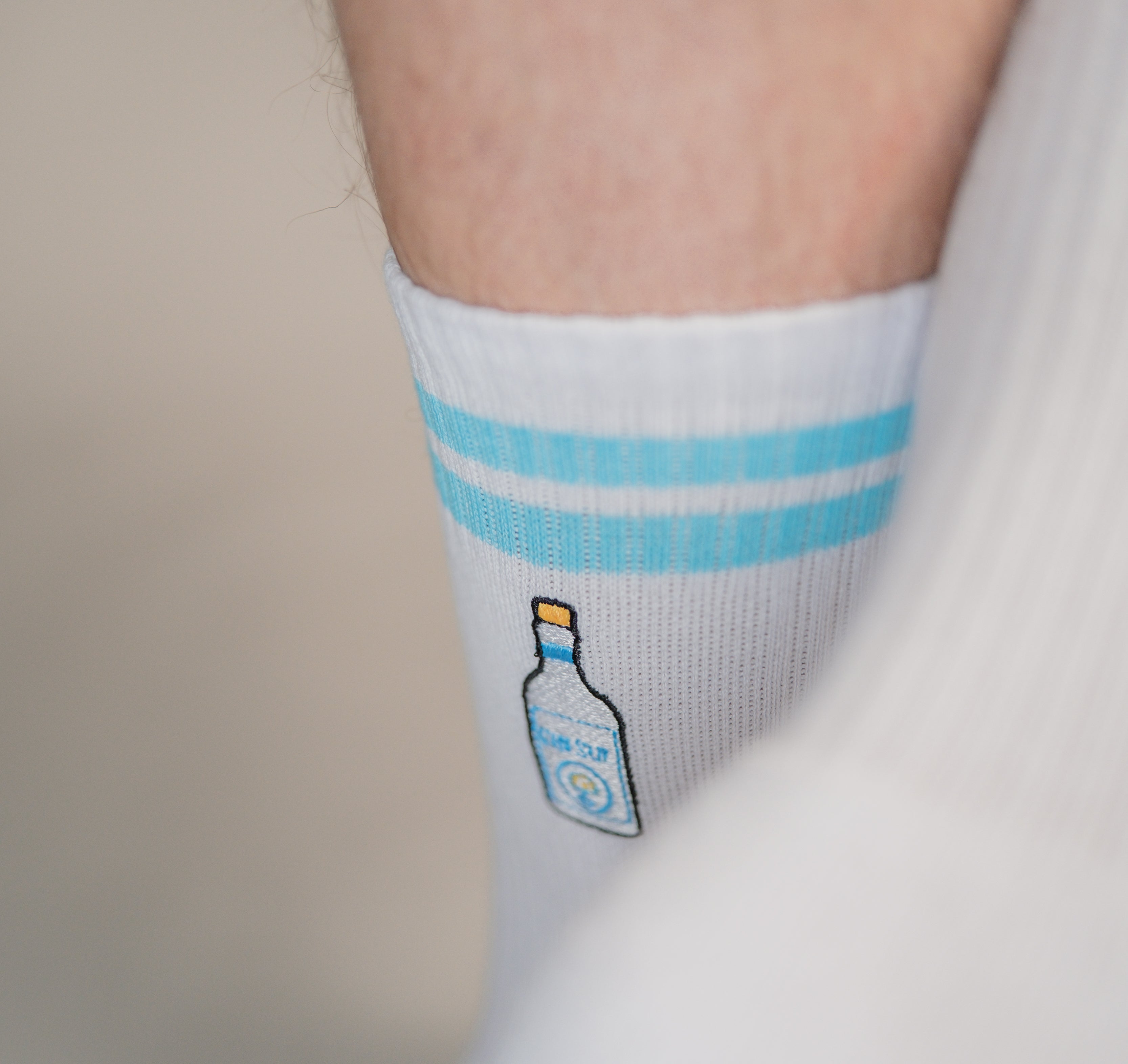 Wir sind nicht nur Mode – wir sind ein Lifestyle. Jedes Teil, das wir kreieren, ist inspiriert von ikonischen Getränken, gefertigt aus 100 % Bio-Baumwolle und bestickt mit hochwertigem, ökologischem Garn. Unsere Designs wie Aperol Spritz, Lillet Wildberry oder Jägermeister bestechen durch einen maximalen Detailgrad auf dezenter Größe auf Socken und anderen Textilien. Unser Fokus liegt auf Qualität, Authentizität und einer Leidenschaft für Kreativität.