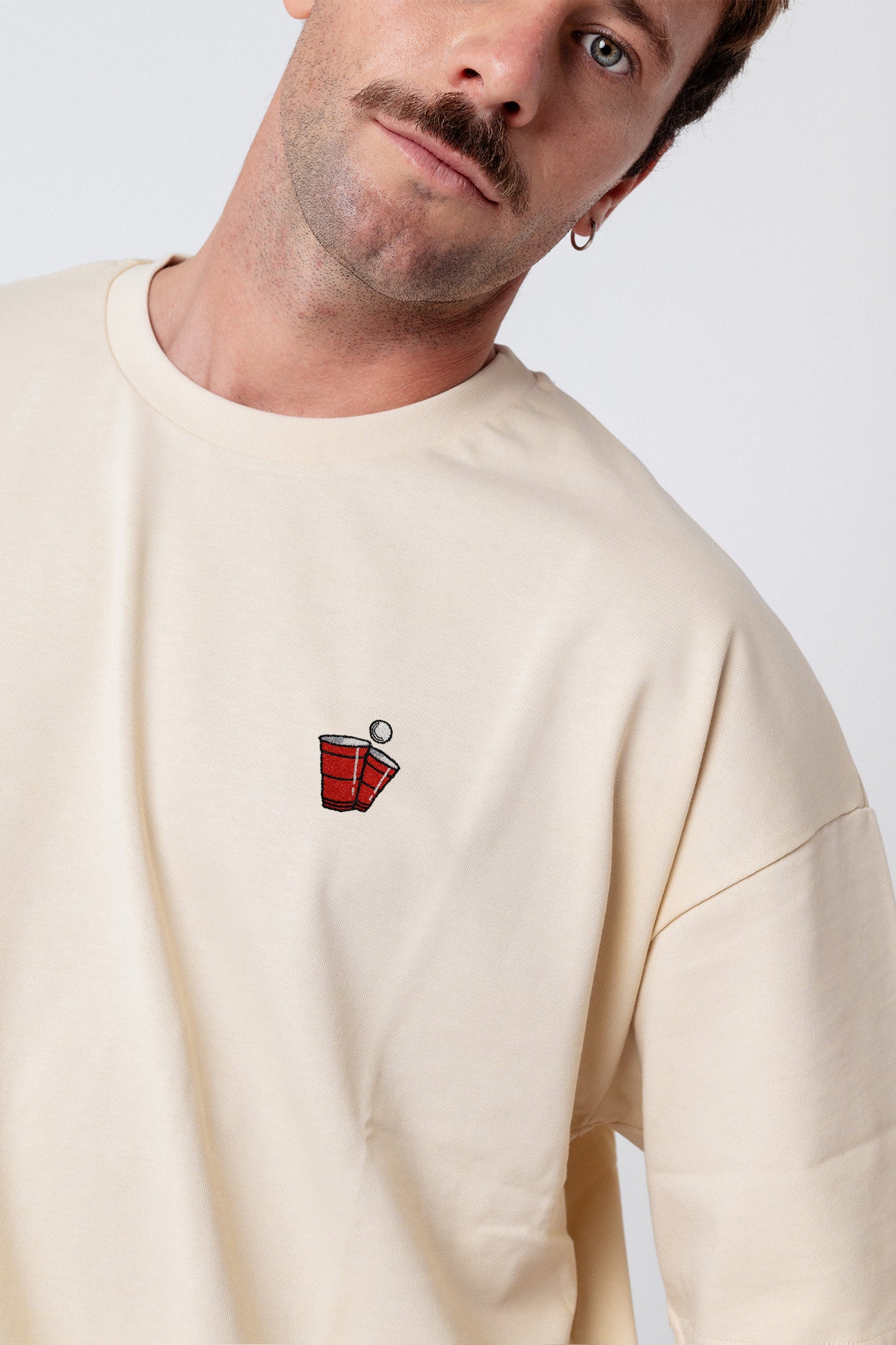 Heavy Oversized Bio Baumwoll T-Shirt mit extra schwerem Stoff (230gsm) und gesticktem Beerpong Design