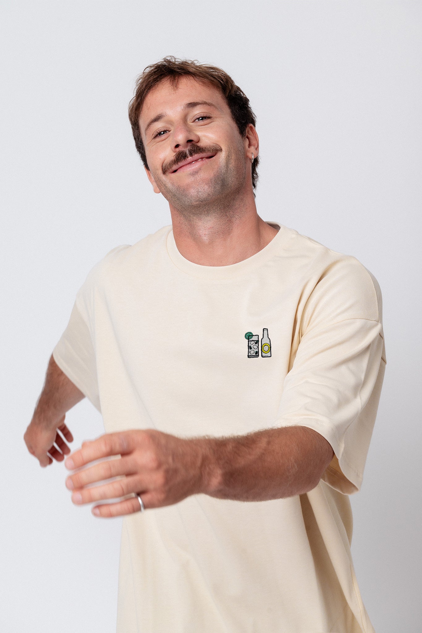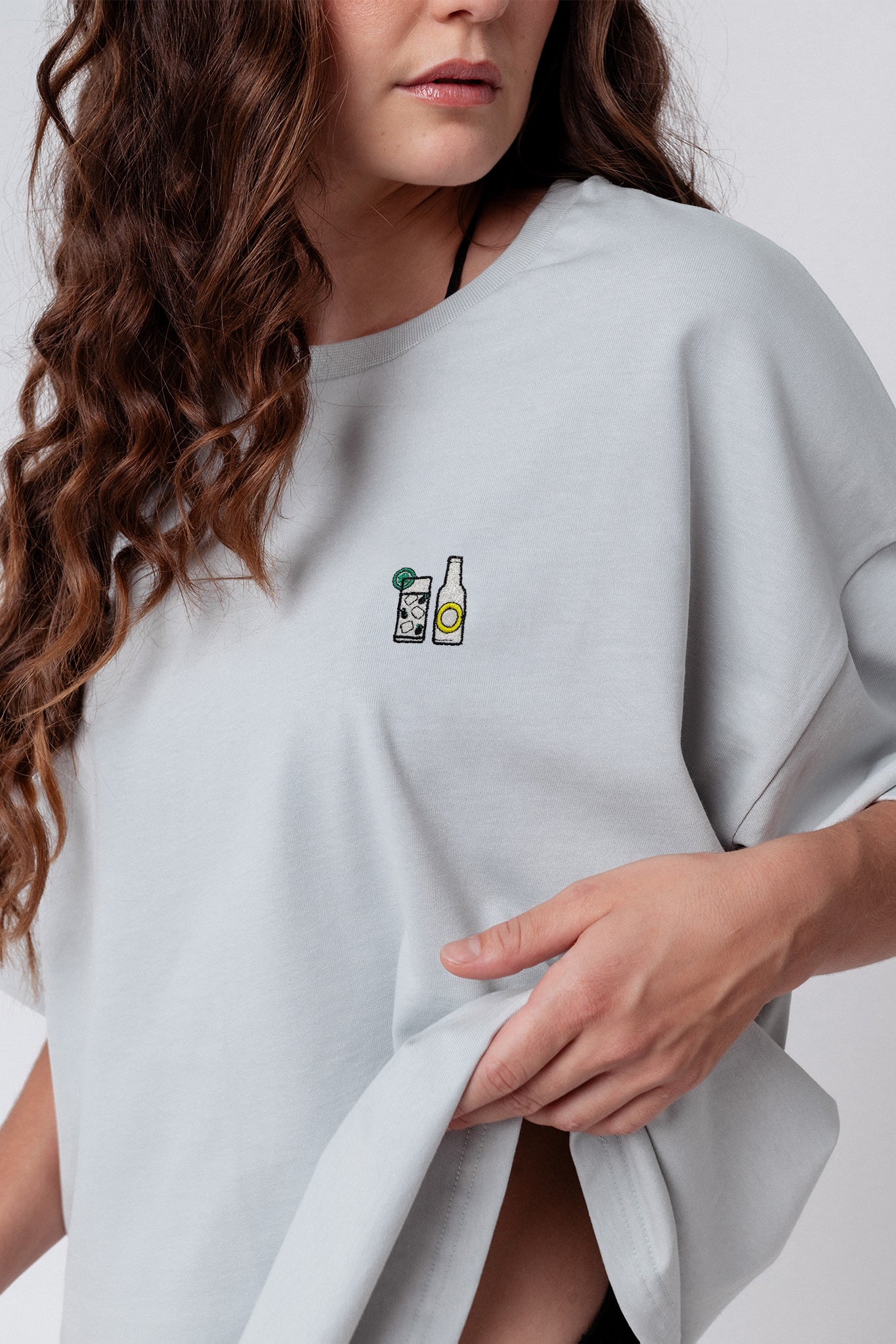 Heavy Oversized Bio Baumwoll T-Shirt mit extra schwerem Stoff (230gsm) und dem gestickten Gin Tonic Design