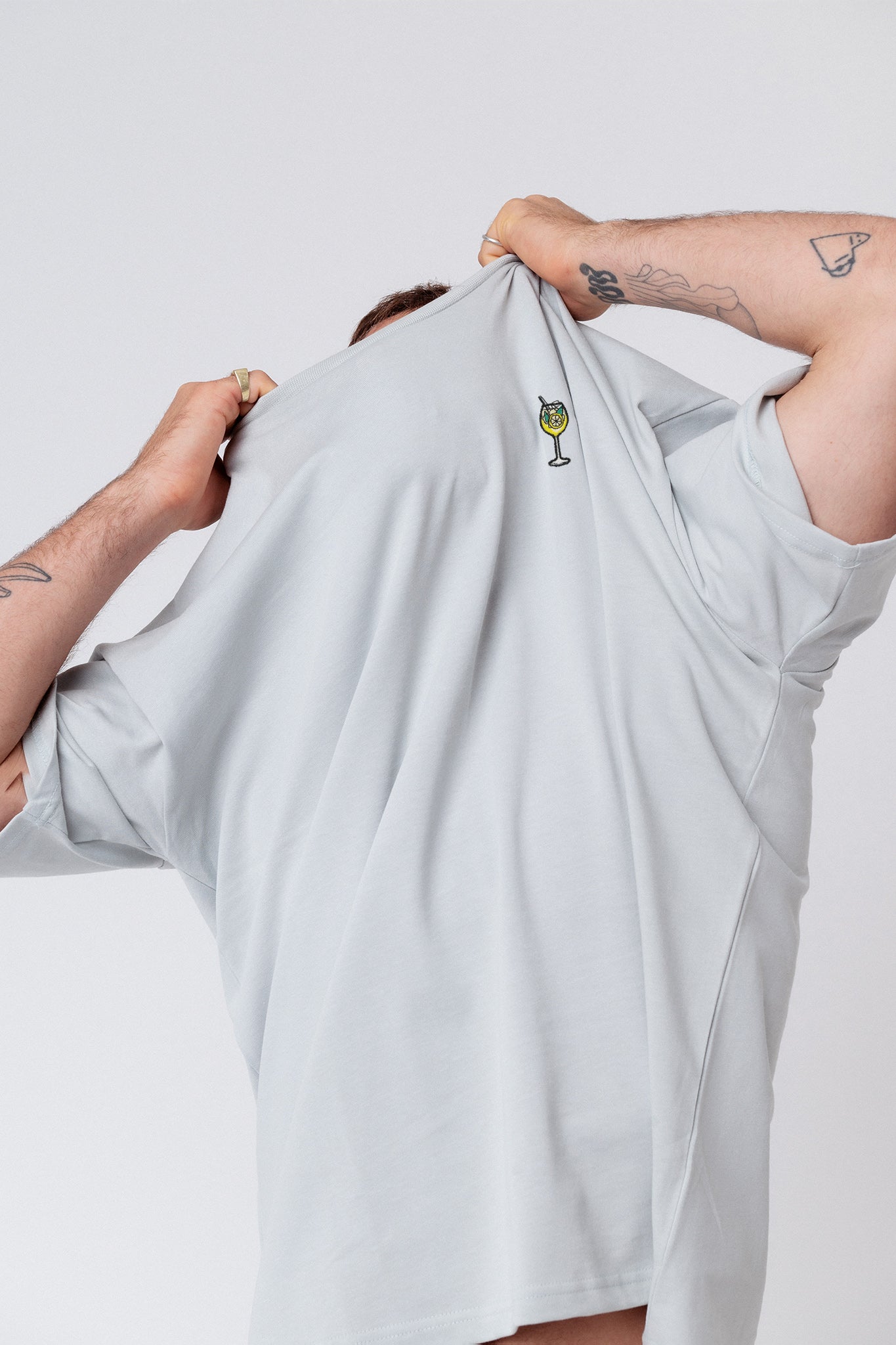 Heavy Oversized Bio Baumwoll T-Shirt mit extra schwerem Stoff (230gsm) und gesticktem Limoncello Spritz Design