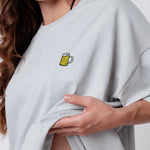 Heavy Oversized Bio Baumwoll T-Shirt mit extra schwerem Stoff (230gsm) und gesticktem Maßkrug Design