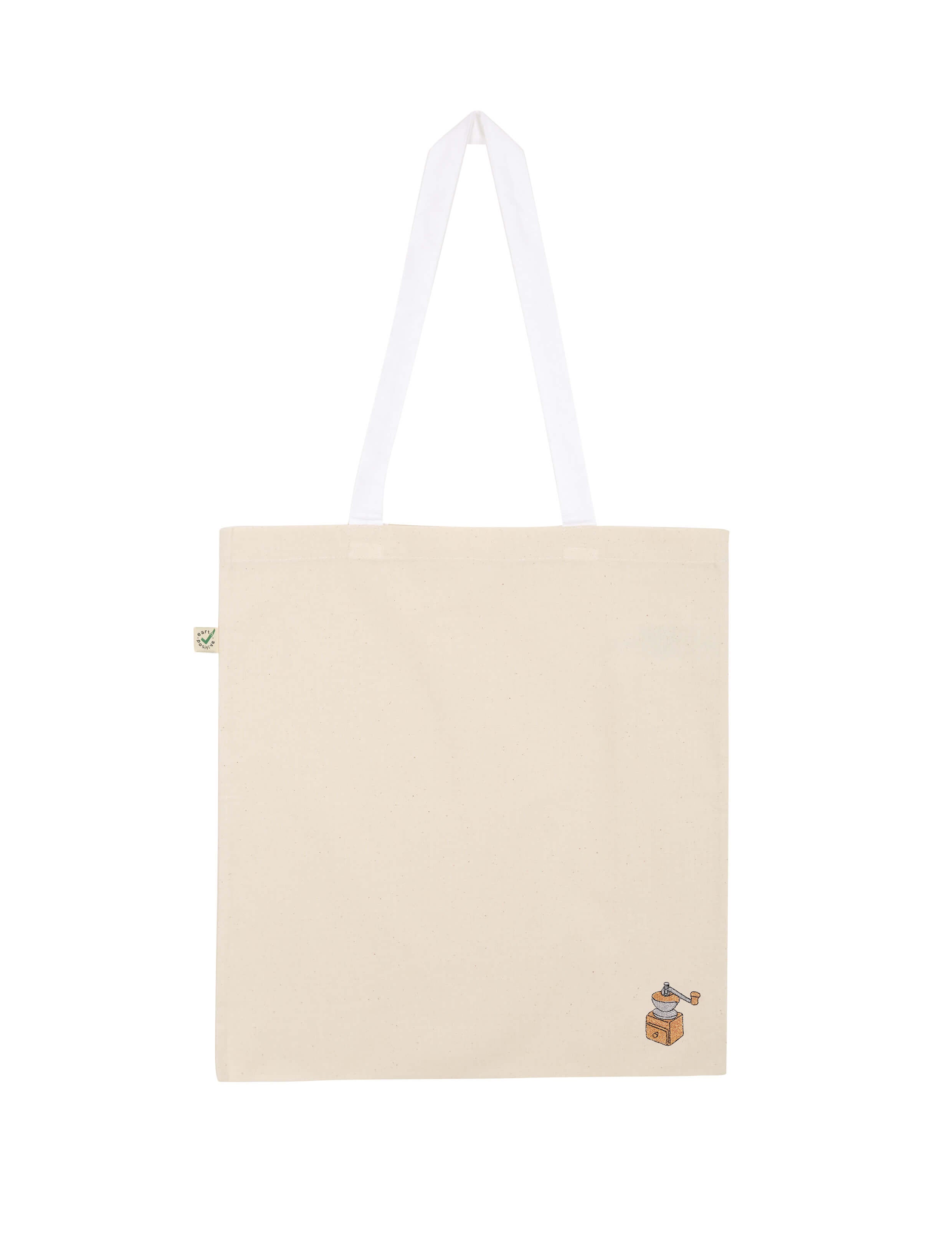 Kaffeemühle | Bestickte Bio Baumwoll Tragetasche