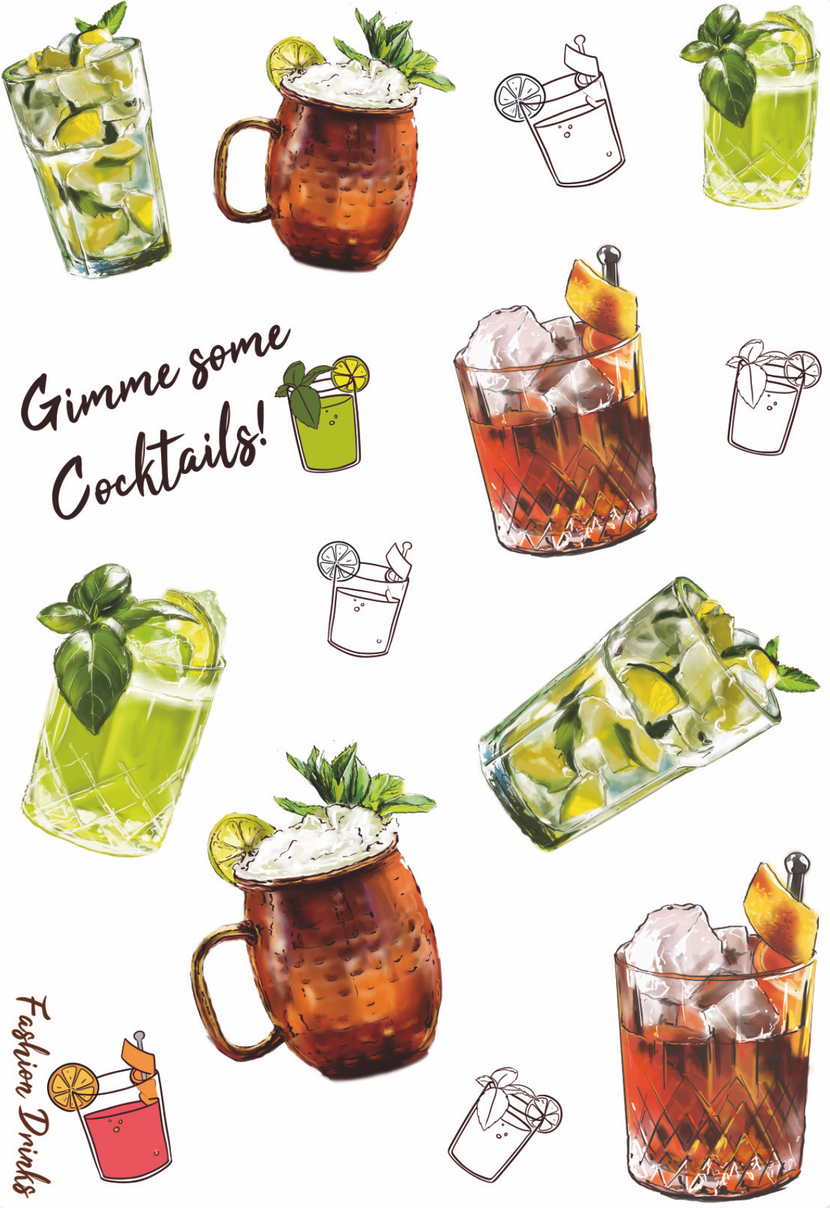 Cocktails | Duurzame zelfklevende tatoeages