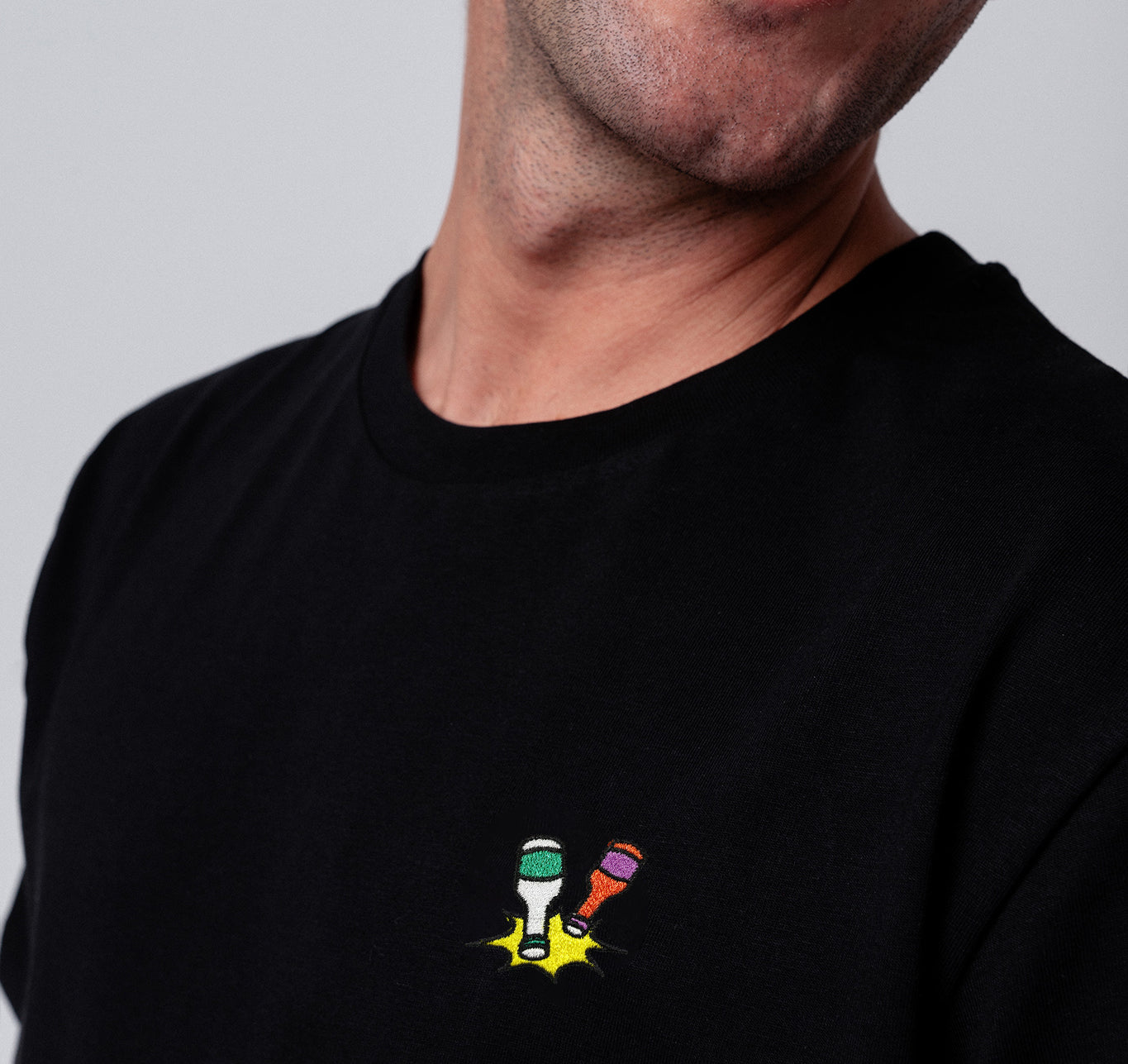 Jedes Design bei Fashion Drinks wird mit viel Liebe zum Detail handgezeichnet. Danach wird es sorgfältig auf unsere Stickmaschinen programmiert und übertragen. Während des Designprozesses führen wir im Schnitt 5-10 Probe-Stickvorgänge durch, um sicherzustellen, dass das Ergebnis 100% genau und perfekt ist. Unsere Spezialität ist die feine, detaillierte Stickerei im Bereich von 4-5 cm, auf die wir besonders stolz sind. So garantieren wir, dass jedes T-Shirt ein einzigartiges Kunstwerk ist, das höchste Qualität bietet.