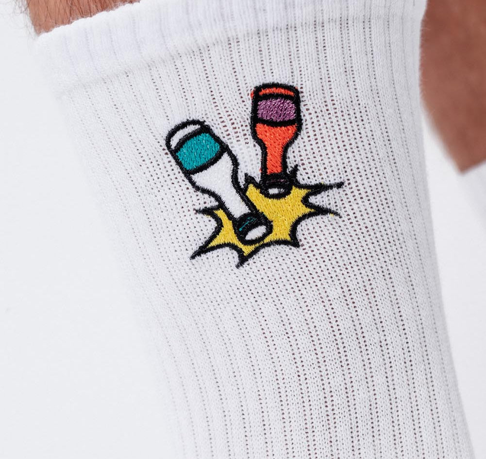 Wir sind nicht nur Mode – wir sind ein Lifestyle. Jedes Teil, das wir kreieren, ist inspiriert von ikonischen Getränken, gefertigt aus 100 % Bio-Baumwolle und bestickt mit hochwertigem, ökologischem Garn. Unsere Designs wie Aperol Spritz, Lillet Wildberry oder Jägermeister bestechen durch einen maximalen Detailgrad auf dezenter Größe auf Socken und anderen Textilien. Unser Fokus liegt auf Qualität, Authentizität und einer Leidenschaft für Kreativität.