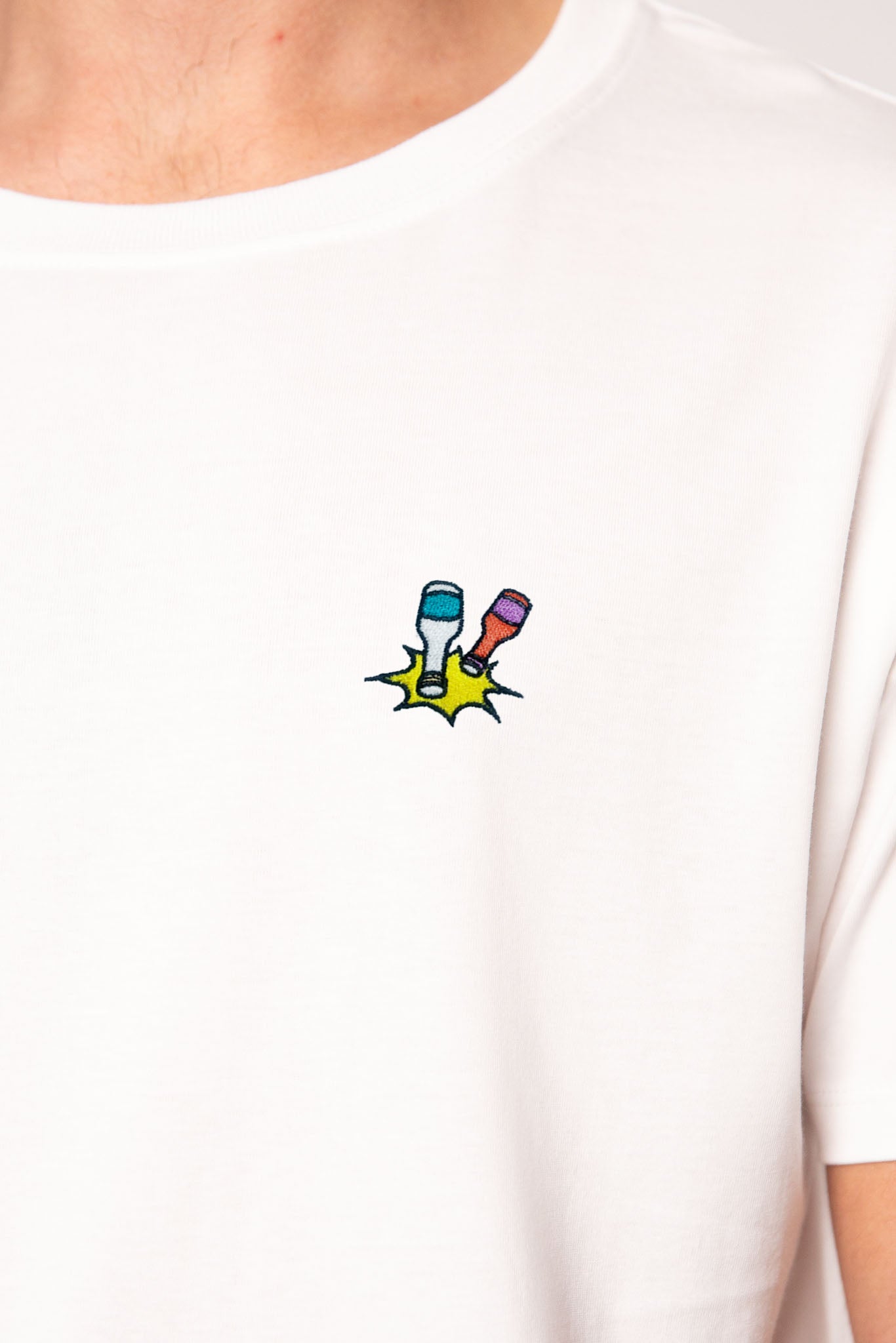 Besticktes Bio Baumwoll Unisex T-Shirt mit schwerem Stoff (190gsm) und dem offiziellen gestickten Kleiner Klopfer® Design