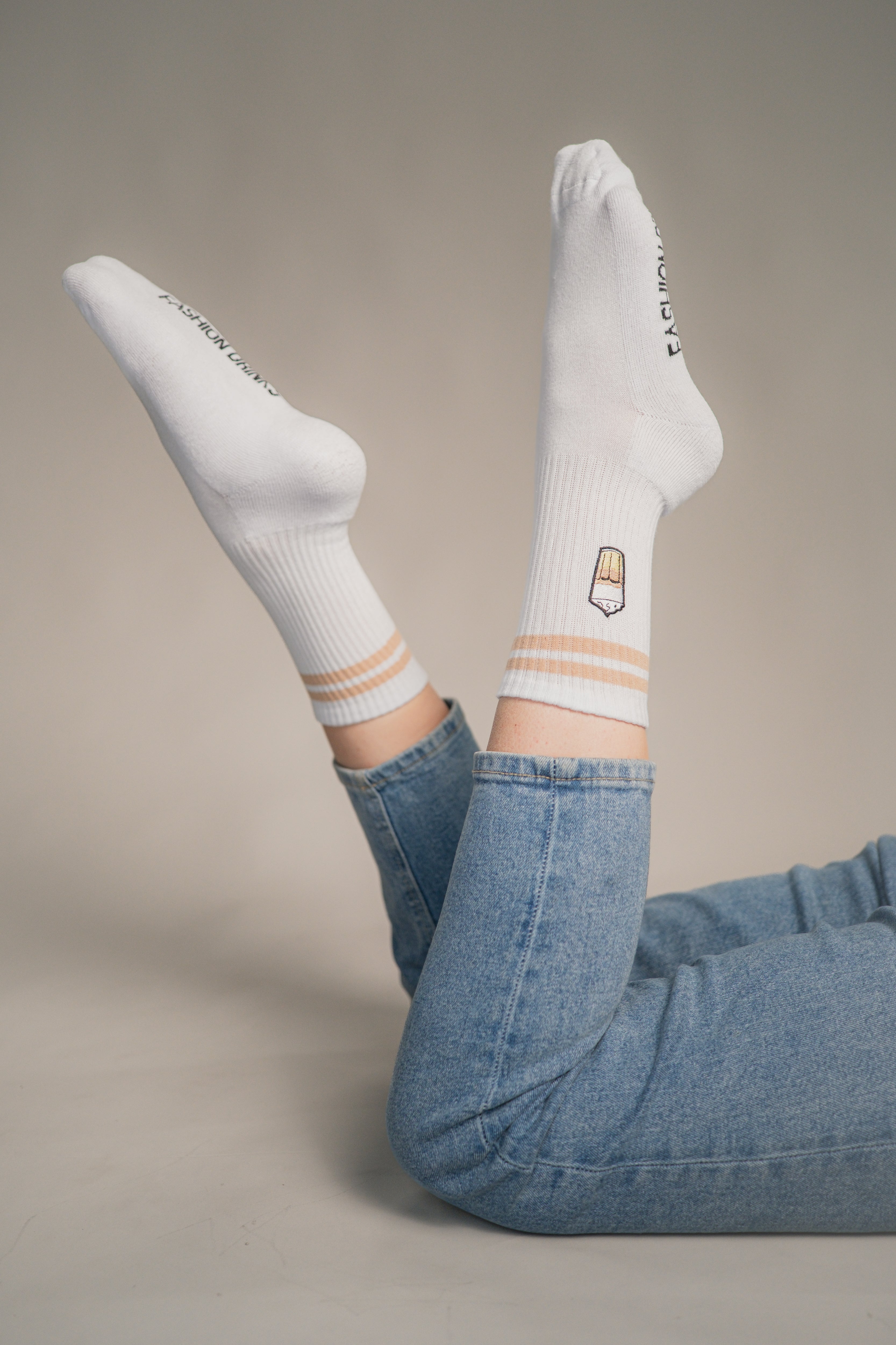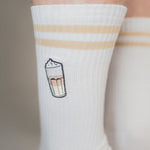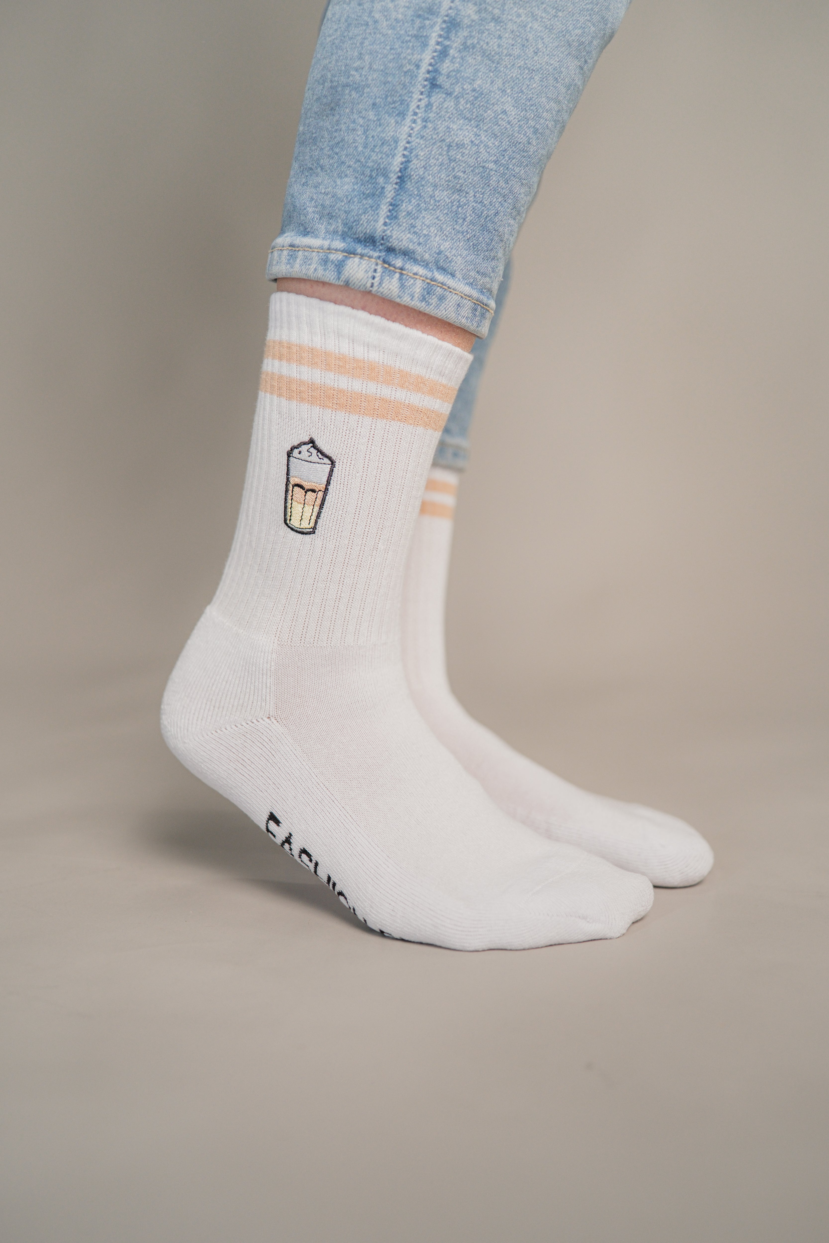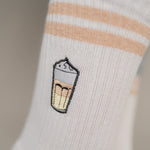 Super hochwertige Bio Baumwoll Crew Socken mit gesticktem Latte Macchiato Design