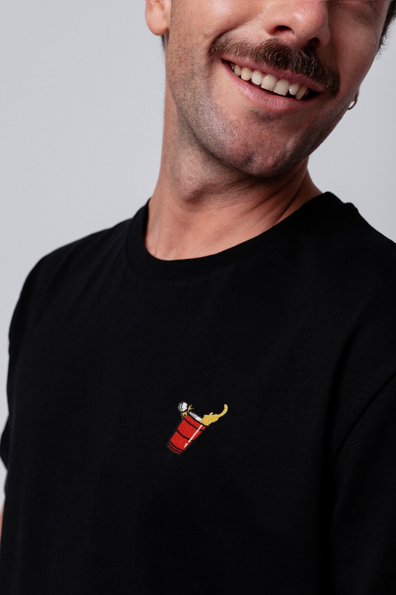 Besticktes Bio Baumwoll Unisex T-Shirt mit schwerem Stoff (190gsm) und gesticktem Beerpong Randtreffer Design