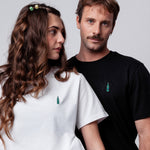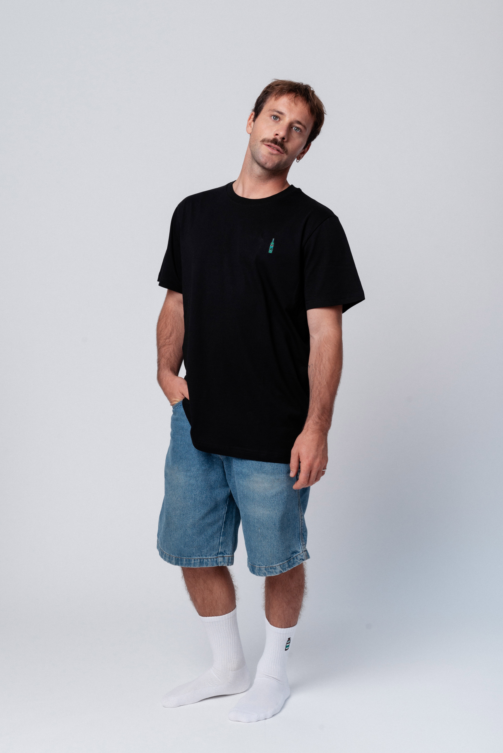 Super hochwertiges Bio Baumwoll Unisex T-Shirt mit schwerem Stoff (190gsm) und der offiziell gestickten Pfeffi Flasche