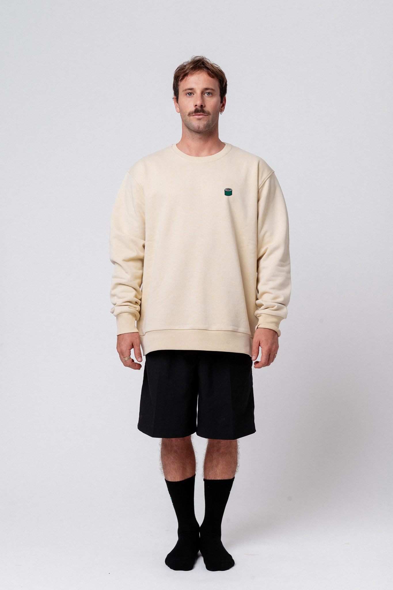 Bestickter Bio Baumwoll Unisex Pullover mit schwerem Stoff (320gsm) und gesticktem Sushi Maki Design