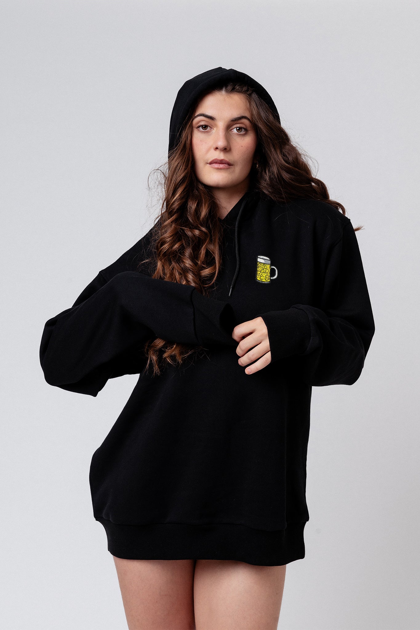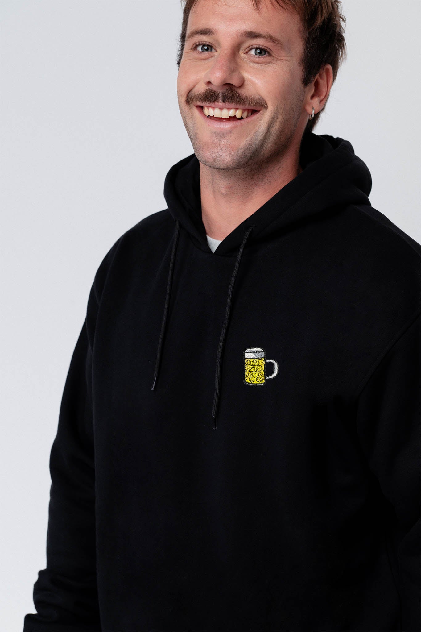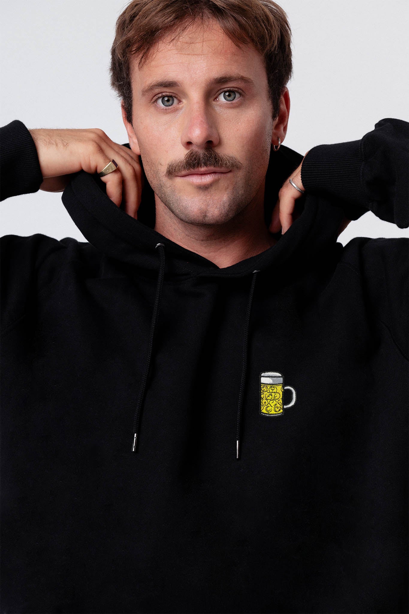 Unisex hoodie van super hoge kwaliteit biologisch katoen met zware stof (350 gsm) en geborduurd bierpulontwerp