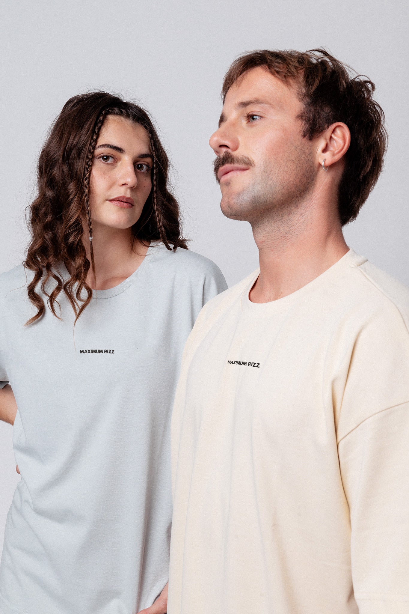 Heavy Oversized Bio Baumwoll T-Shirt mit extra schwerem Stoff (230gsm) und gesticktem Maximum Rizz Schriftzug