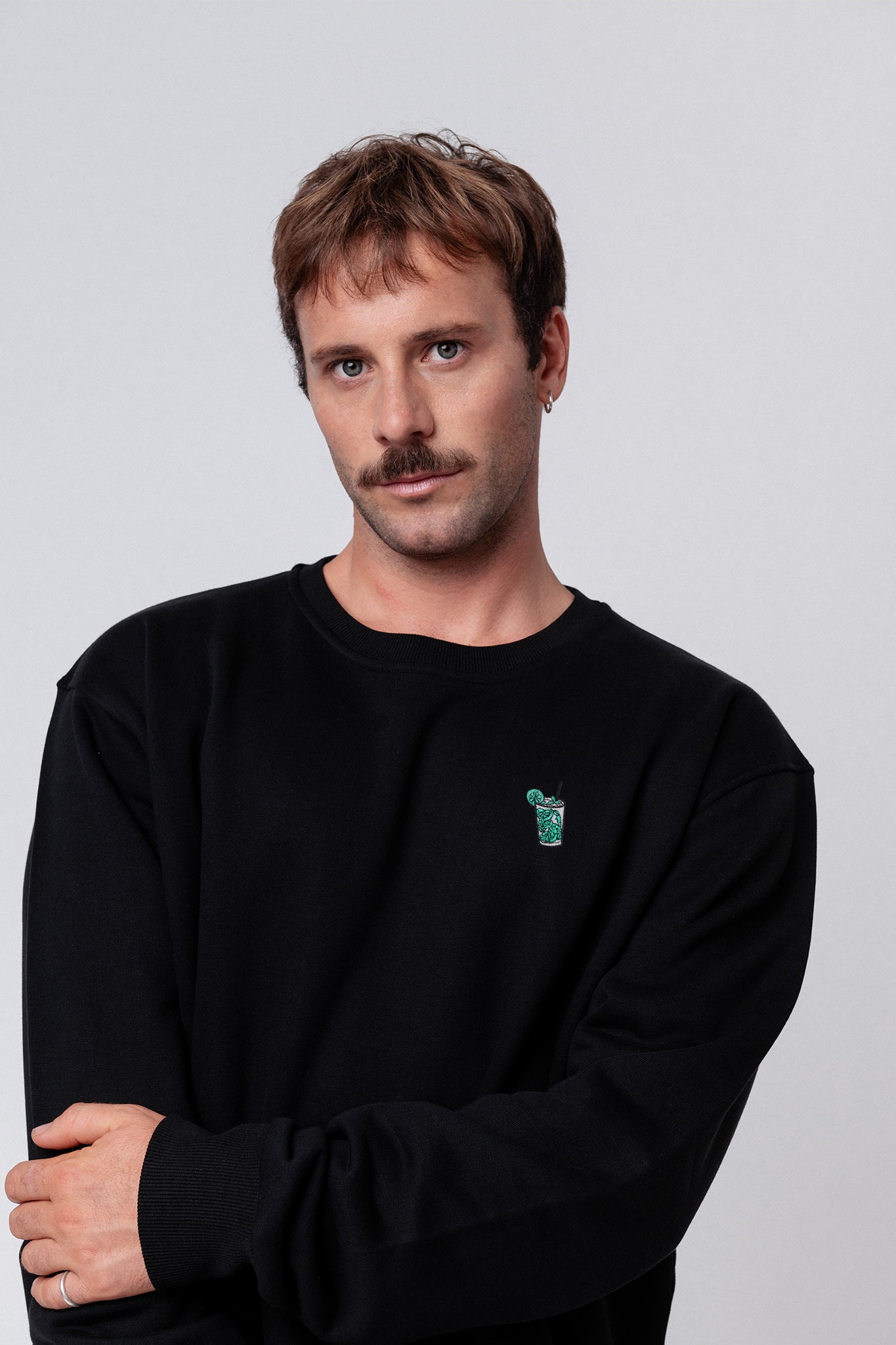 Bestickter Bio Baumwoll Unisex Pullover mit schwerem Stoff (320gsm) und gesticktem Mojito Design