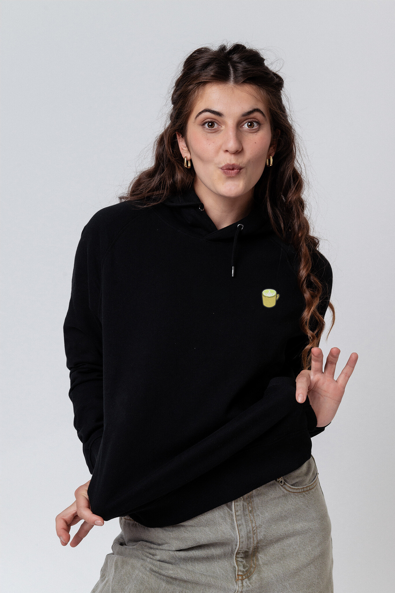 Super hochwertiger Bio Baumwoll Unisex Hoodie mit schwerem Stoff (350gsm) und gesticktem Matcha Latte Design