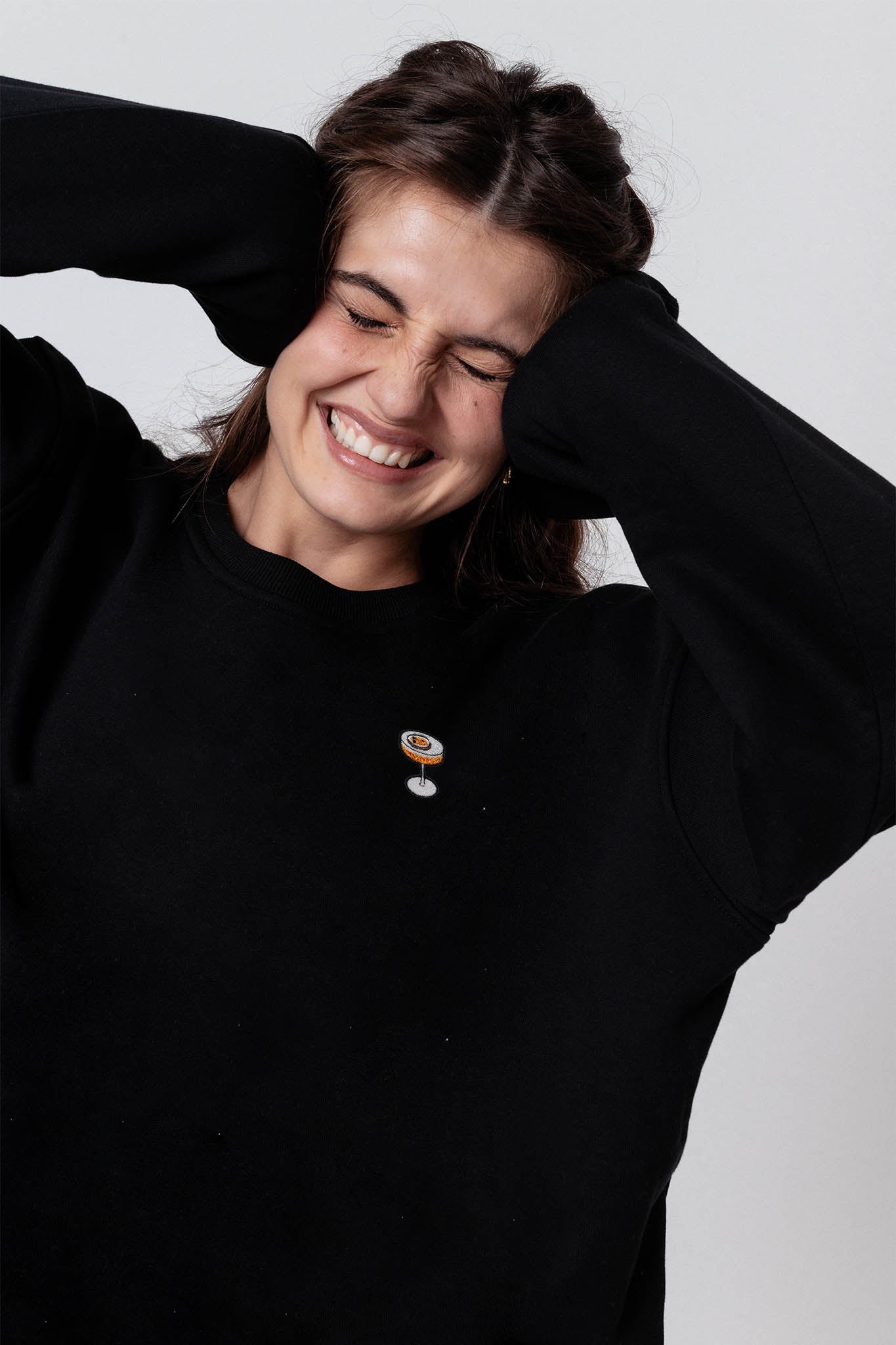 Bestickter Bio Baumwoll Frauen Pullover mit schwerem Stoff (320gsm) und gesticktem Pornstar Martini Design