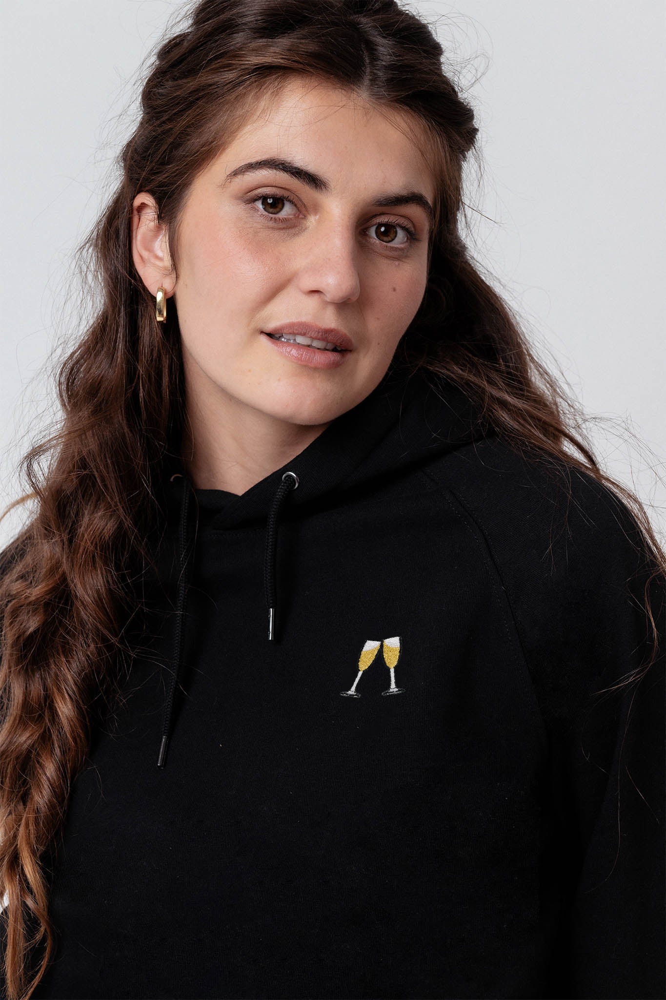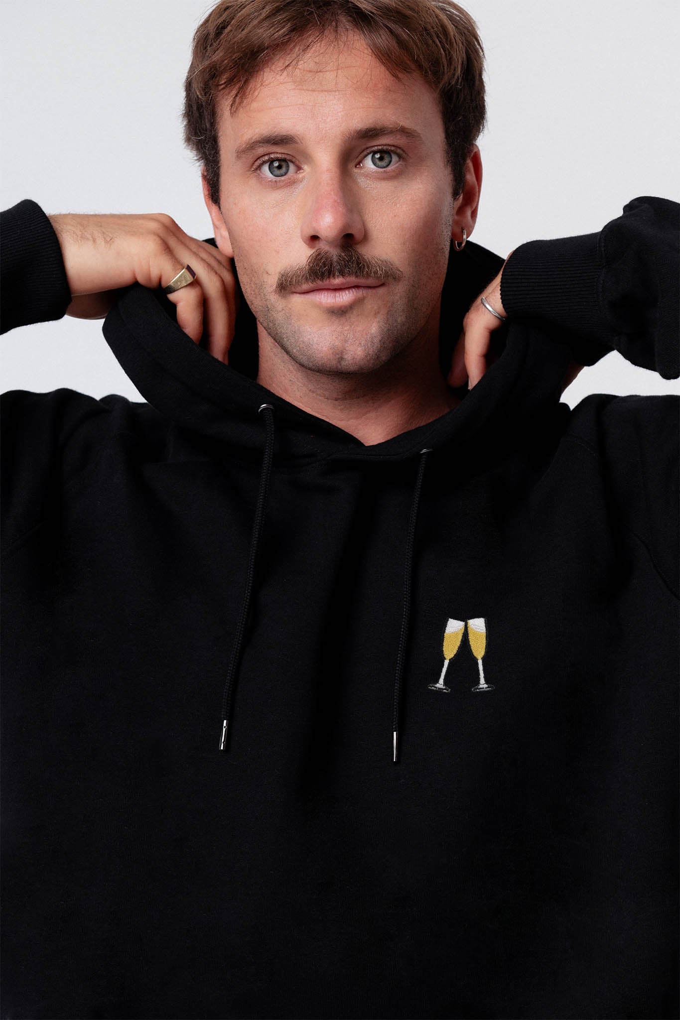 Super hochwertiger Bio Baumwoll Unisex Hoodie mit schwerem Stoff (350gsm) und gesticktem Sekt Design