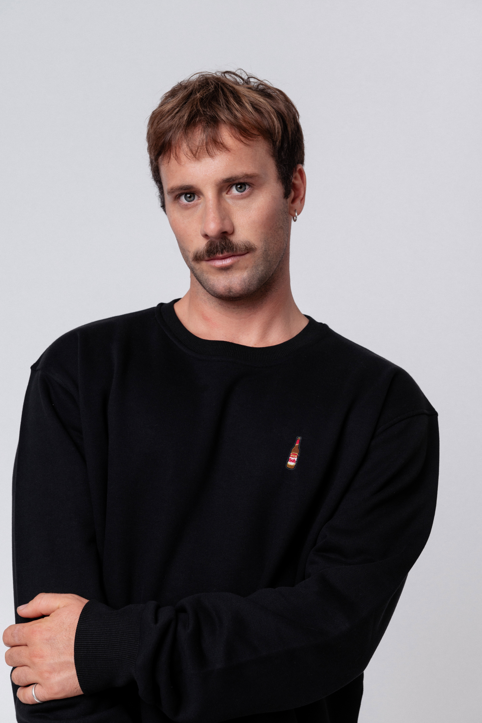 Super hochwertiger Bio Baumwoll Unisex Pullover mit schwerem Stoff (320gsm) und der offiziell gestickten Früh Kölsch Flasche