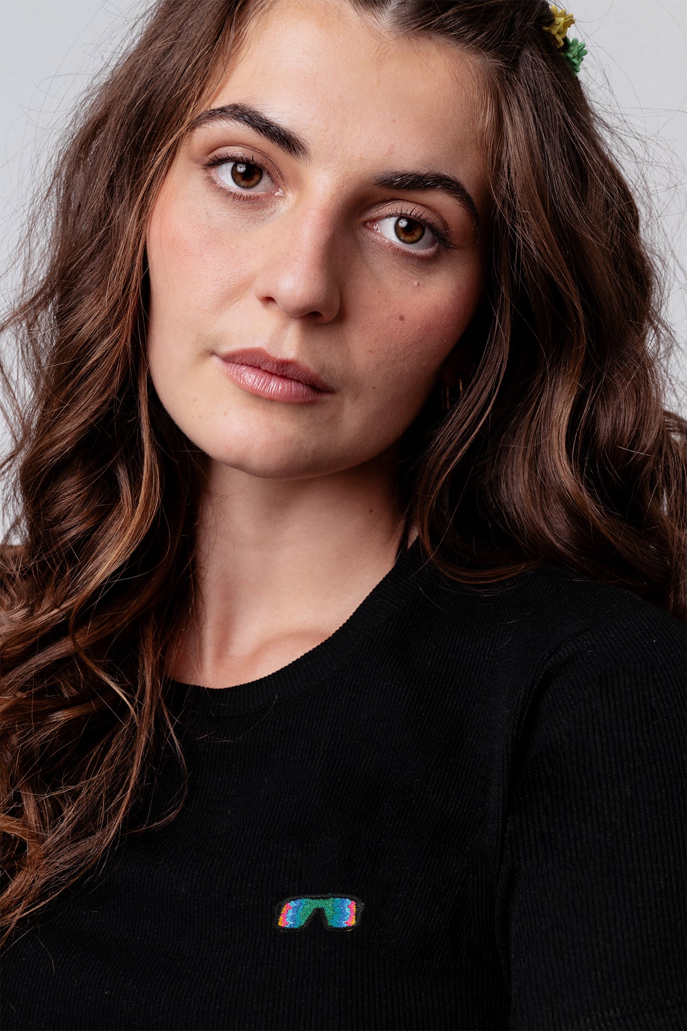 Super hochwertiges Bio Baumwoll Cropped T-Shirt mit gesticktem schnelle Brille Design in drei verschiedenen Schnitt-Varianten: Ripped, Regular & Oversized