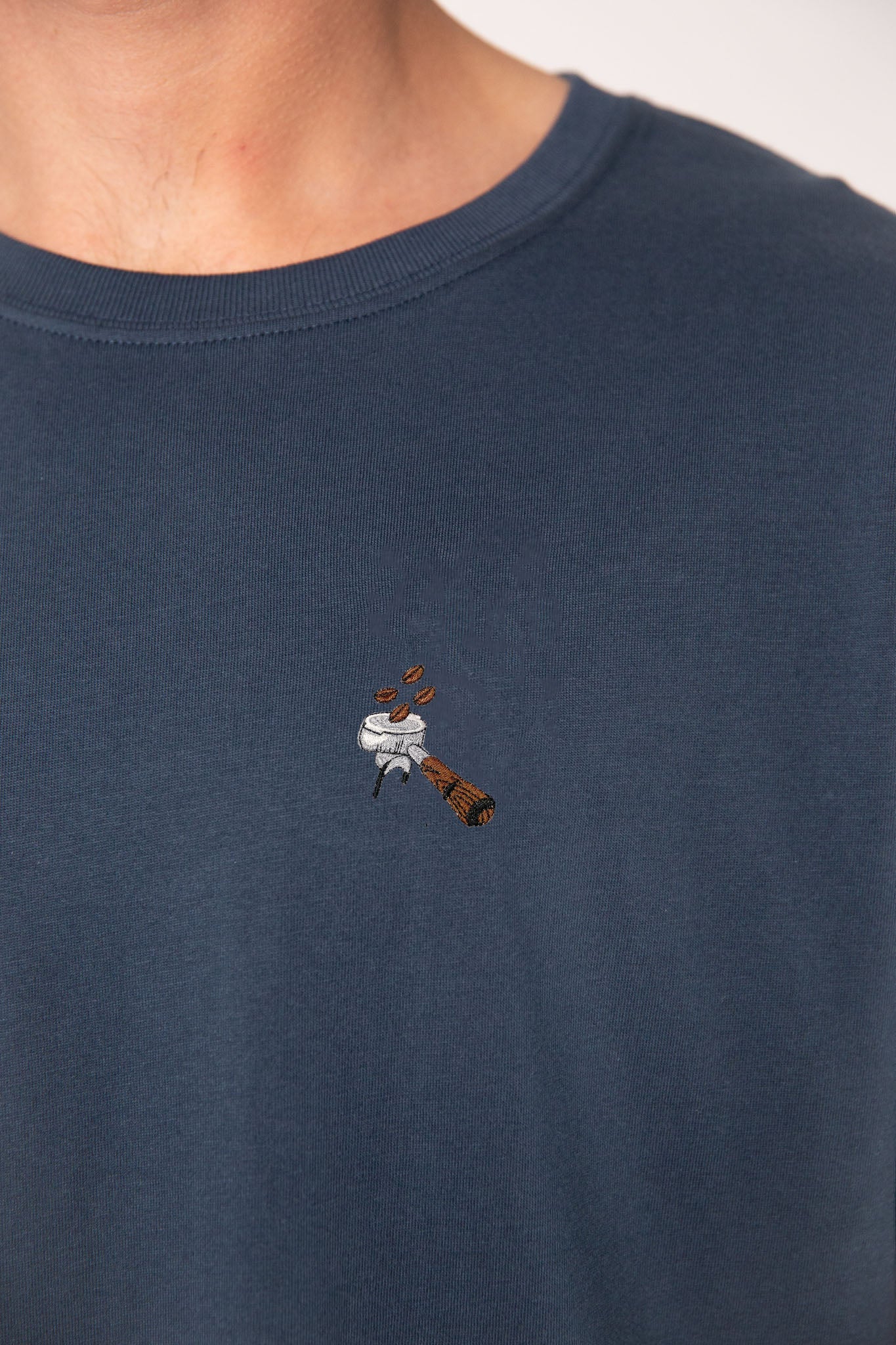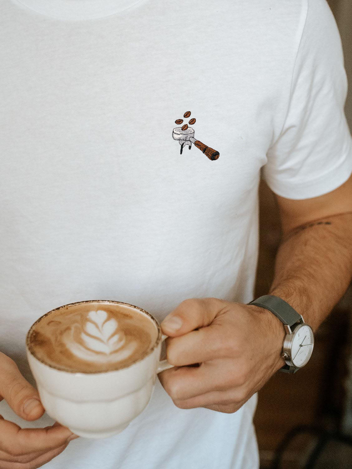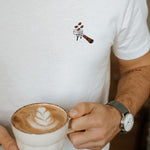 Super hochwertiges Bio Baumwoll Unisex T-Shirt mit extrem angenehmen Stoff (190gsm) und gesticktem Siebträger Beans Design
