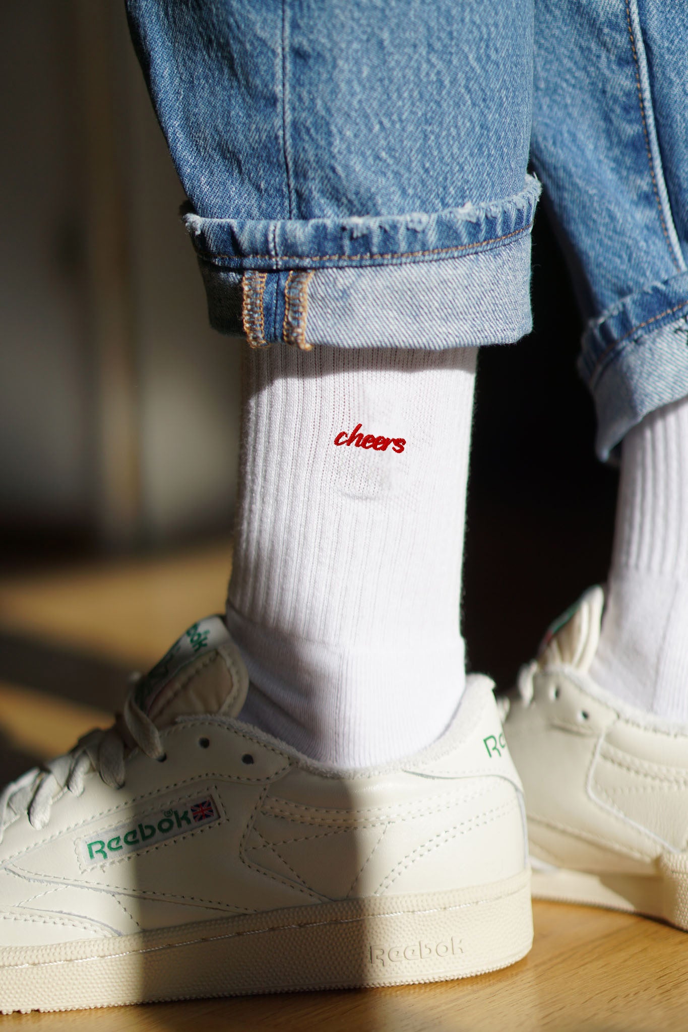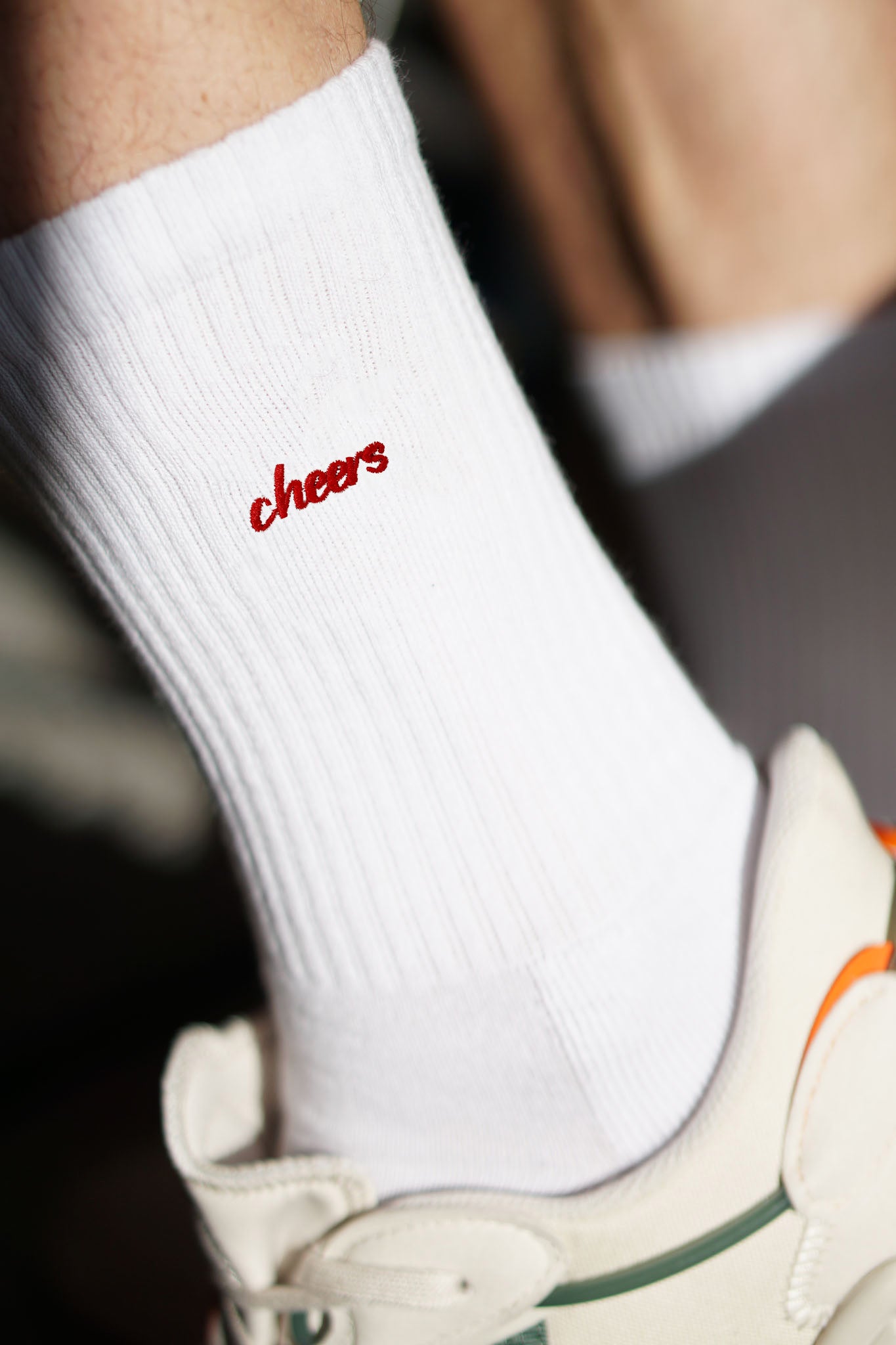 Ronde sokken van super hoge kwaliteit biologisch katoen met geborduurd ontwerp van Cheers