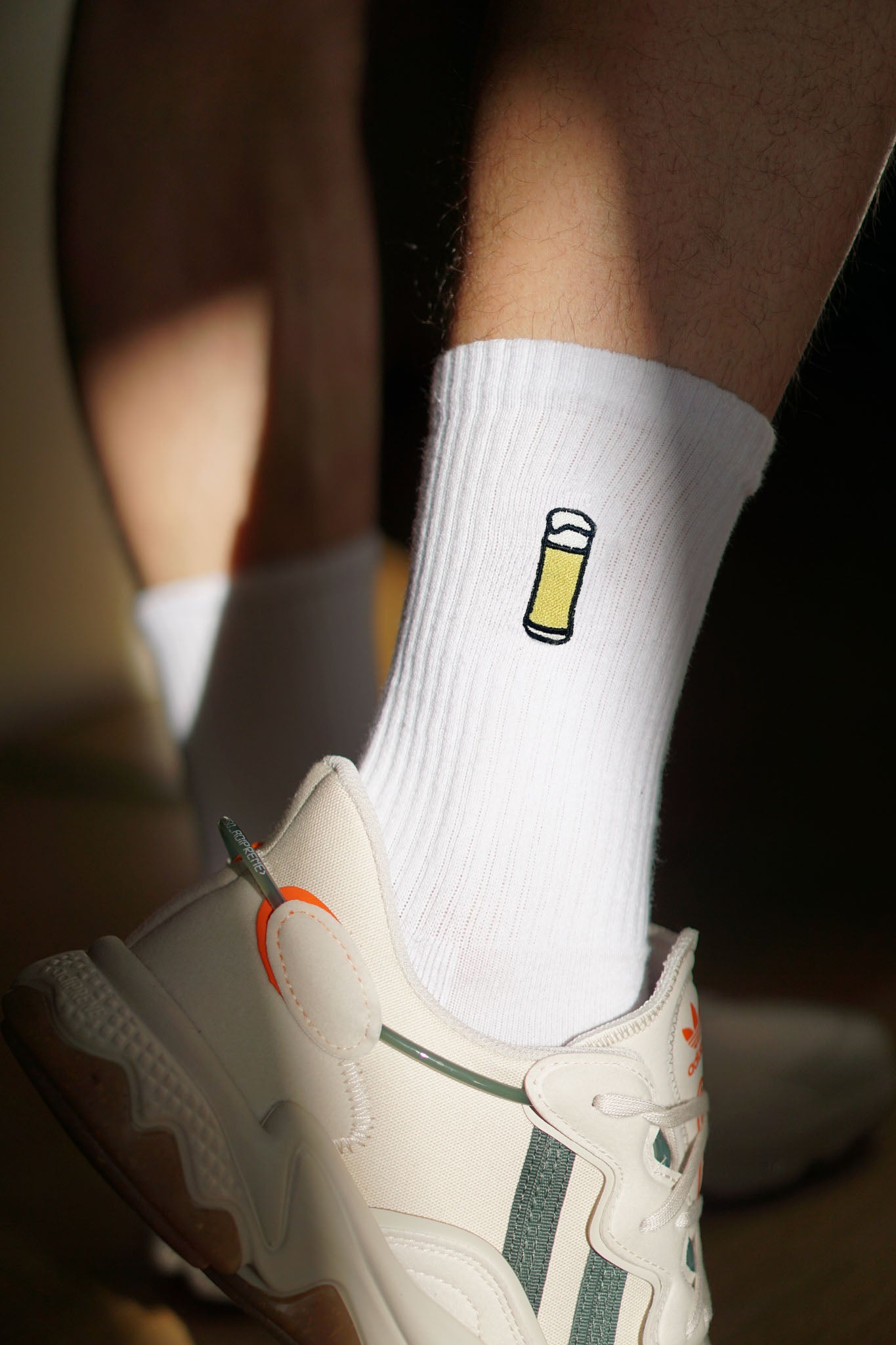 Die Stickerei auf unseren Fashion Drinks Socken bleibt auch nach mehrmaligem Waschen in einwandfreier Form. Wir verwenden präzise Industriemaschinen, die speziell für feine, detaillierte Stickarbeiten entwickelt wurden. So bleibt die Stickerei stabil und die Socken behalten ihre Form. Um die Qualität zu erhalten, empfehlen wir, die Socken bei niedrigen Temperaturen zu waschen und sie auf links zu drehen.